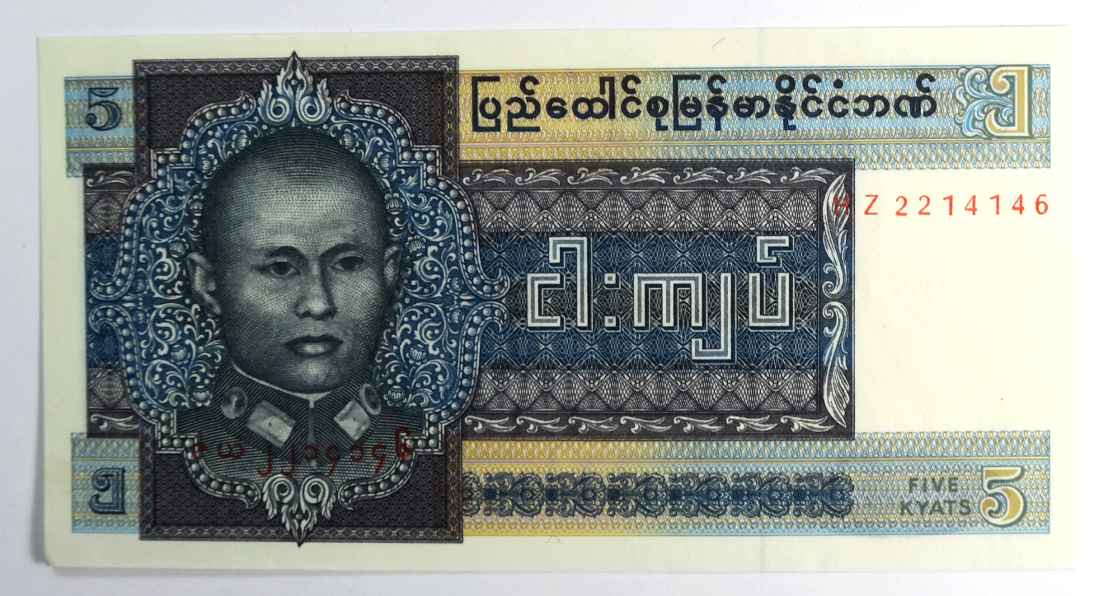 1973 Union of Burma 5 Five Kyats Uncirculated Banknote HZ2214146