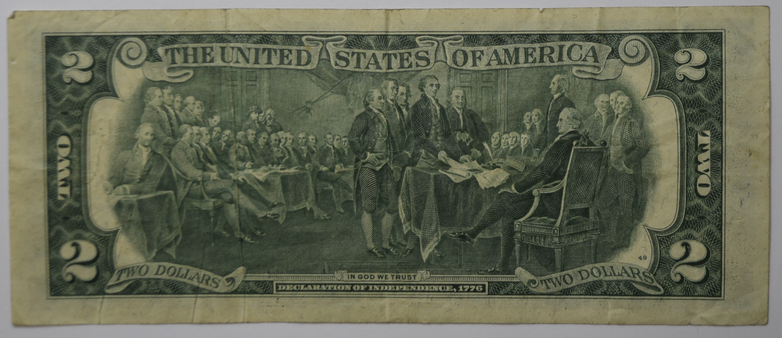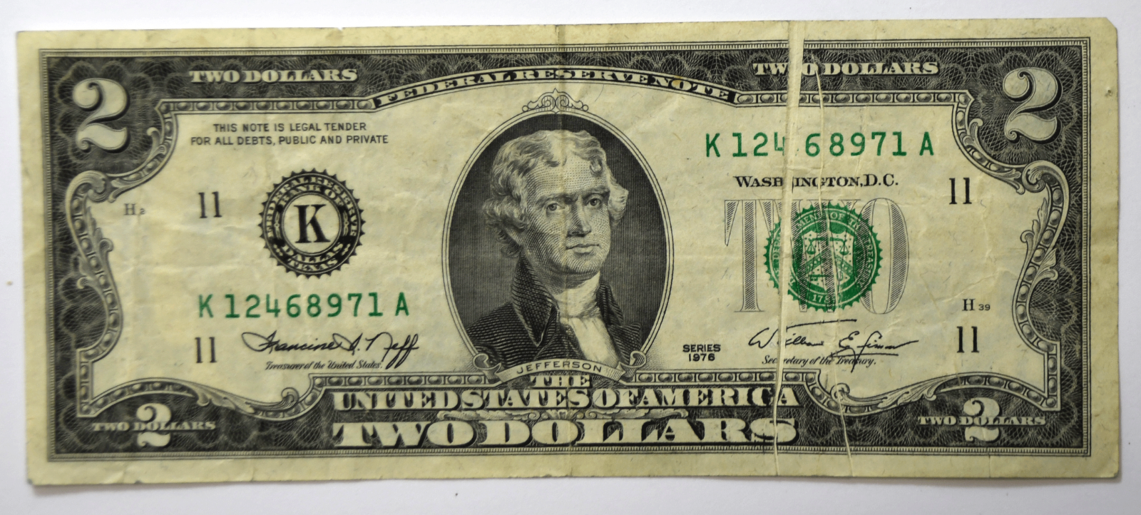 1976 $2 Two Dollars Federal Reserve Note Dallas Gutter Fold Error K12468971A