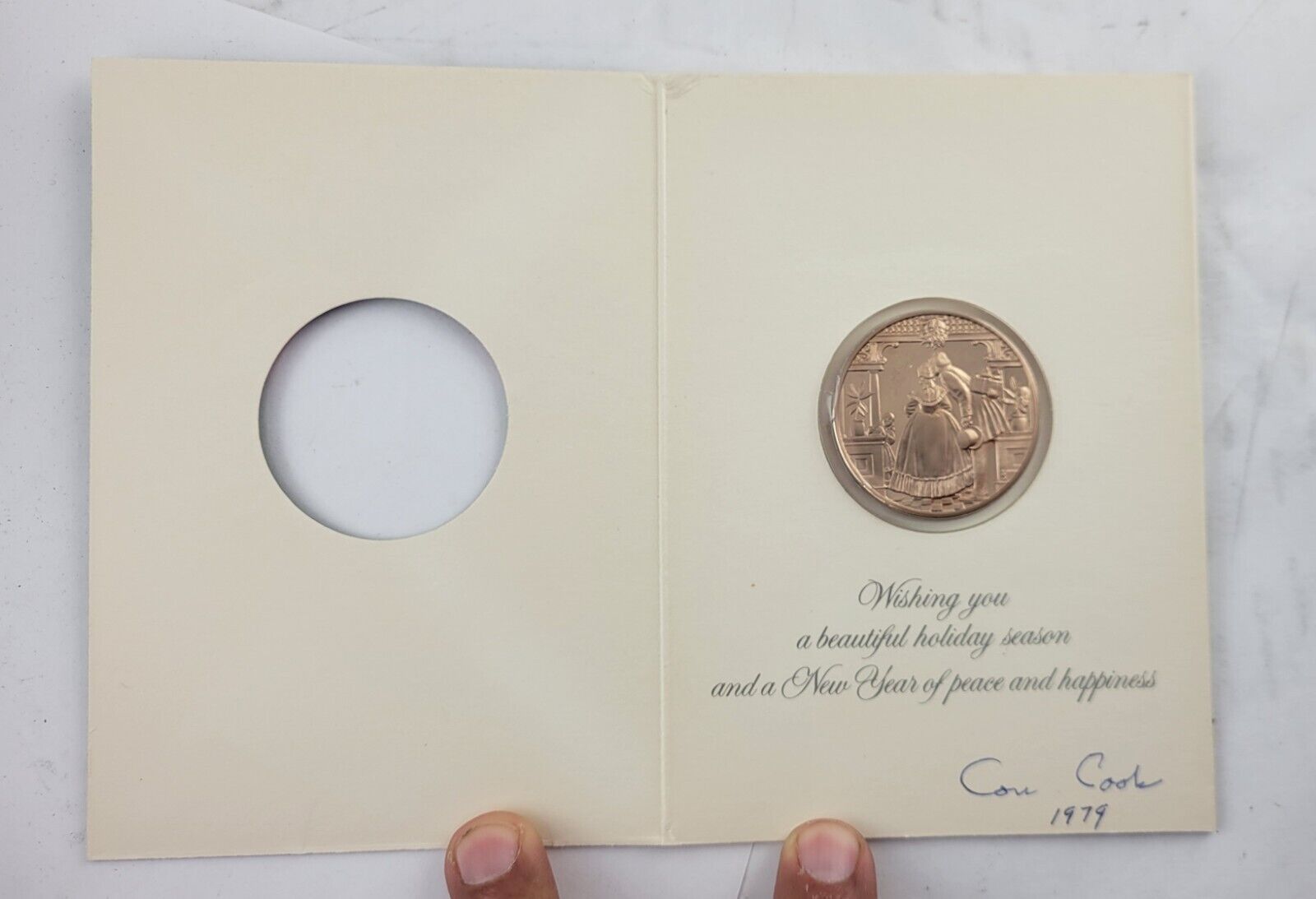 1979 Franklin Mint Christmas Holiday Card Coin Under The Mistletoe Bronze Coin