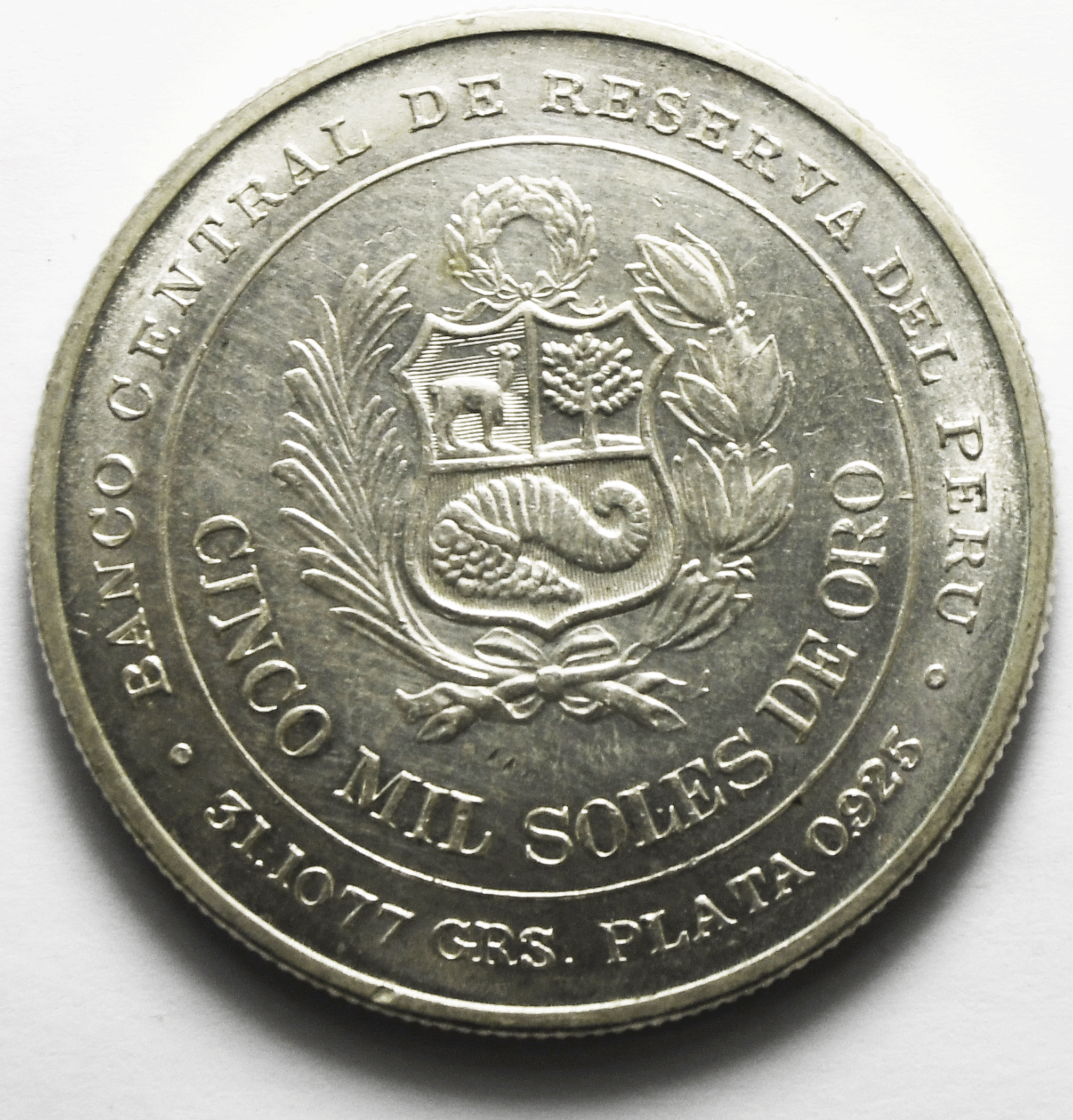 1979 LIMAPeru 5000 Soles Sterling Silver Coin KM# 276 1oz ASW