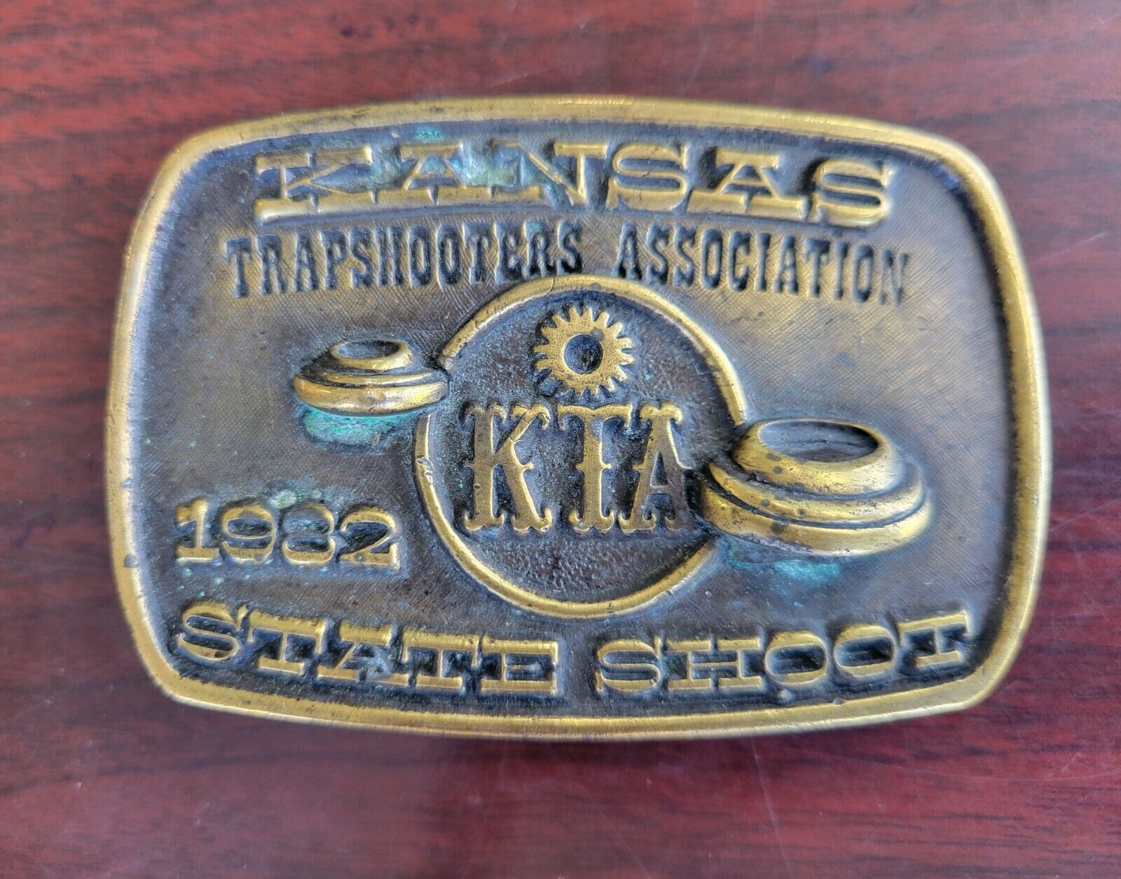 1982 Kansas Trapshooters Association State Shoot Solid Brass Belt Buckle USA