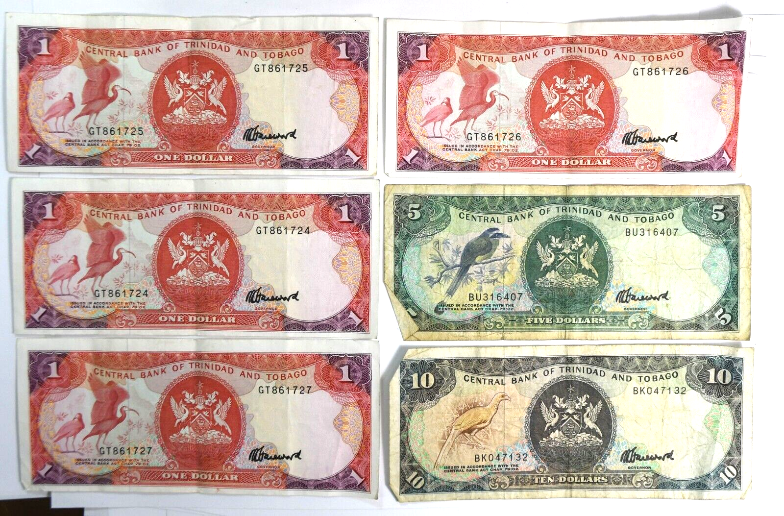 1985 Trinidad Tobago $1 $5 & $10 Banknote 4 Sequential