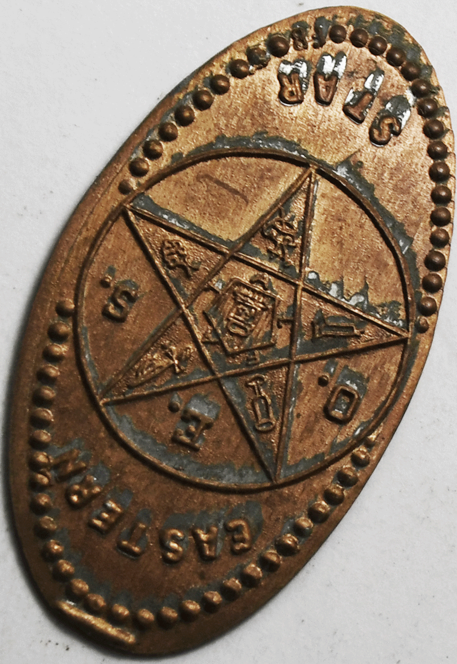 1988 D 1c Elongated Penny Eastern Star Masonic