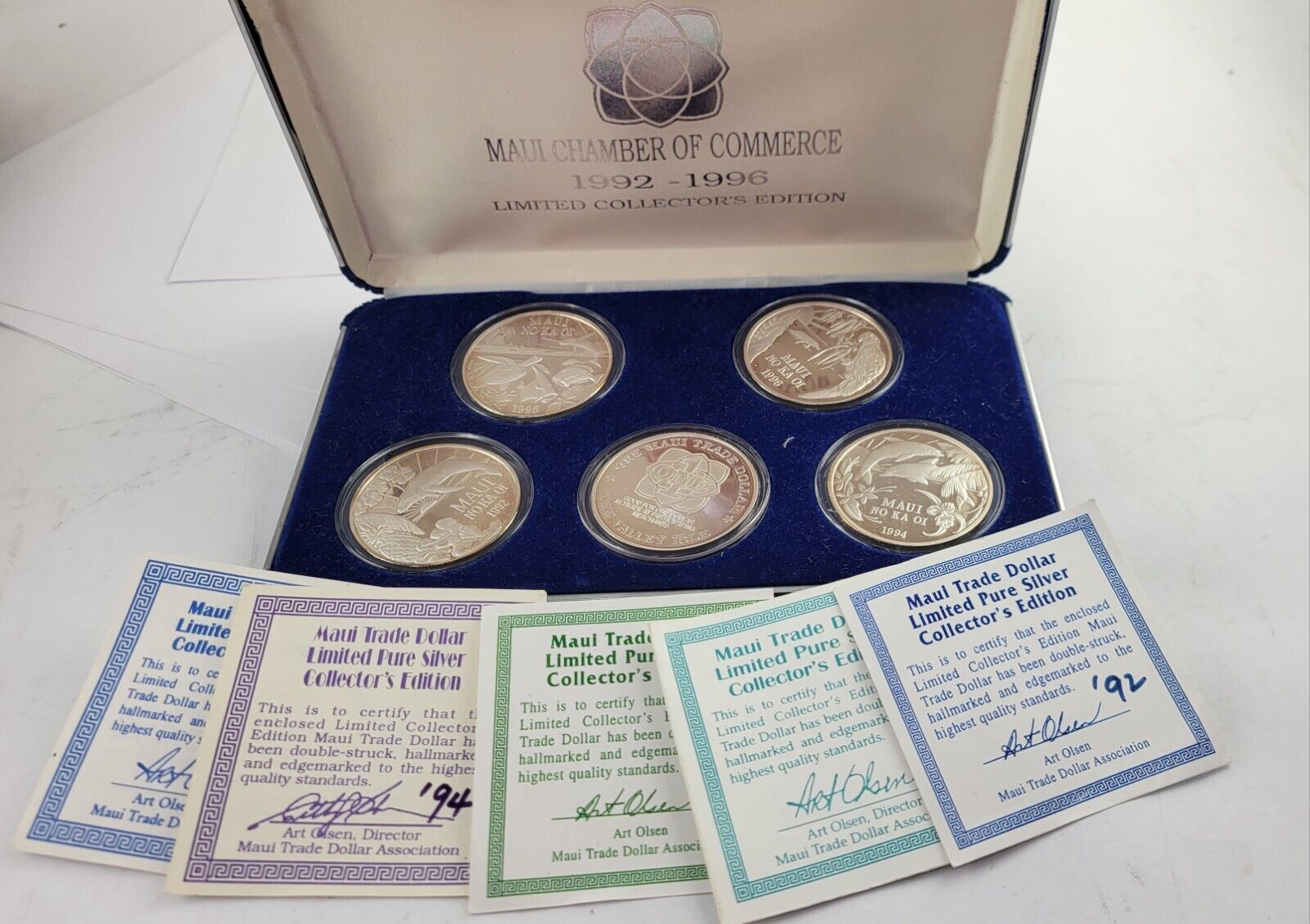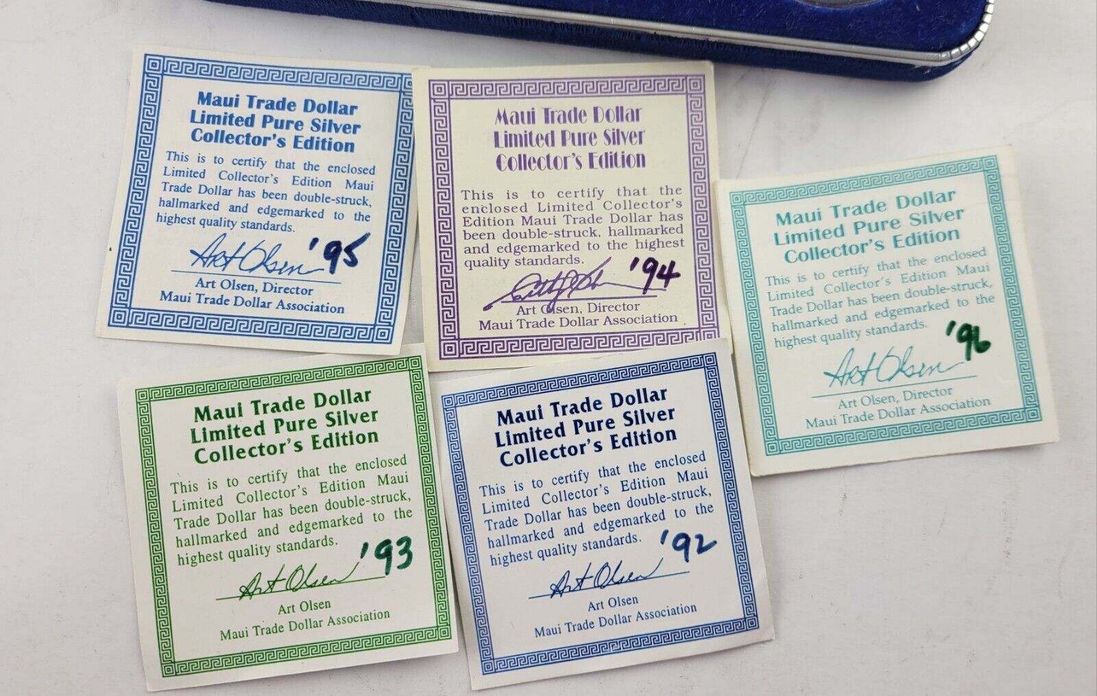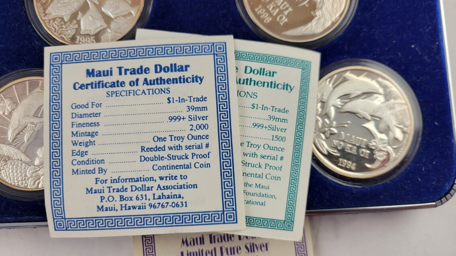 1992-1996 Proof Maui Trade Dollars .999 1oz. Fine Silver 5pc Collectors Edition