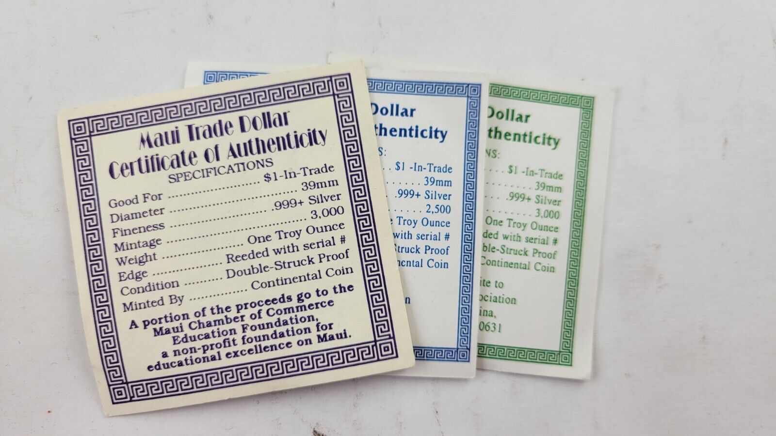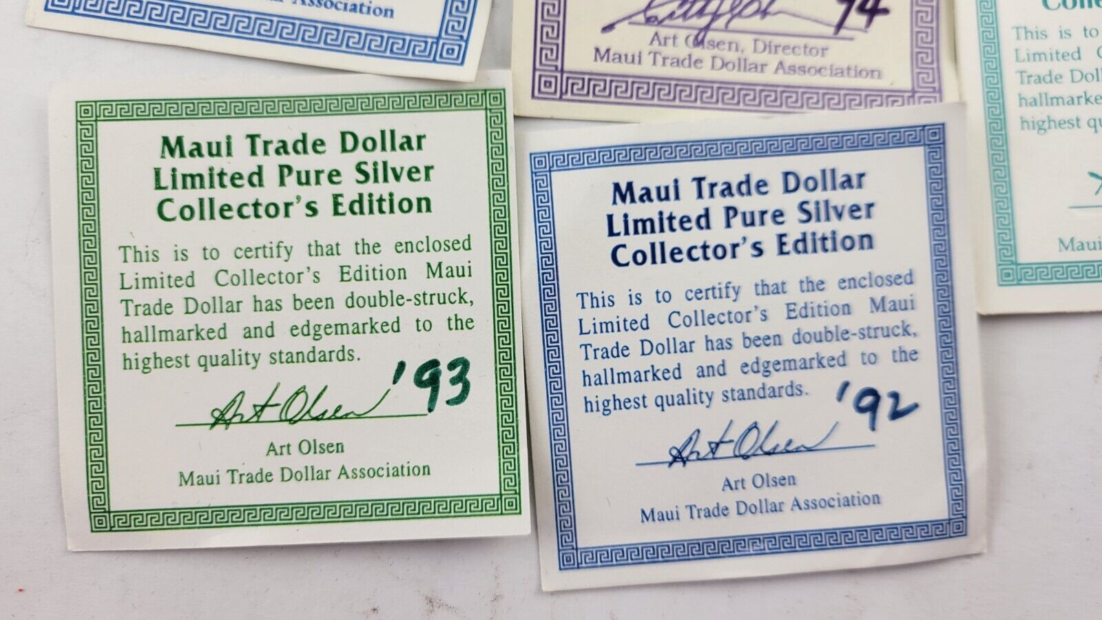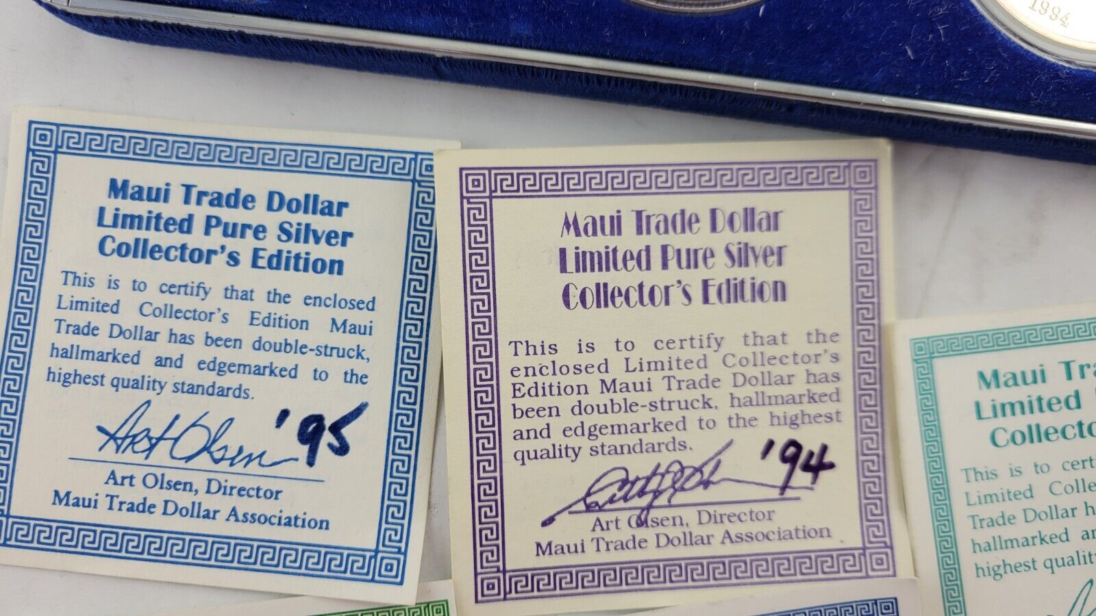 1992-1996 Proof Maui Trade Dollars .999 1oz. Fine Silver 5pc Collectors Edition