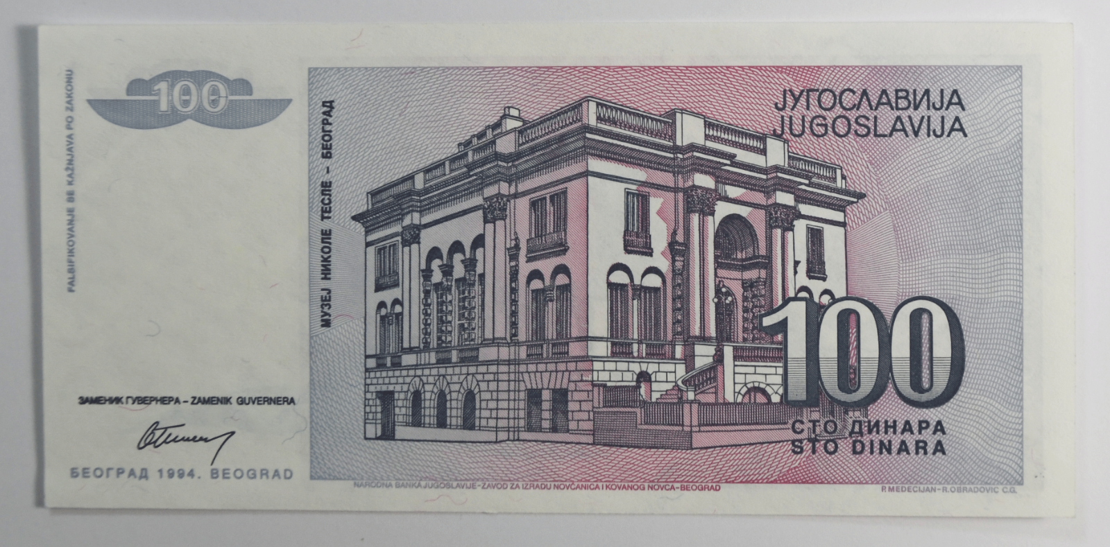 1994 Yugoslavia 100 One Hundred Dinara Uncirculated Banknote AD9717813