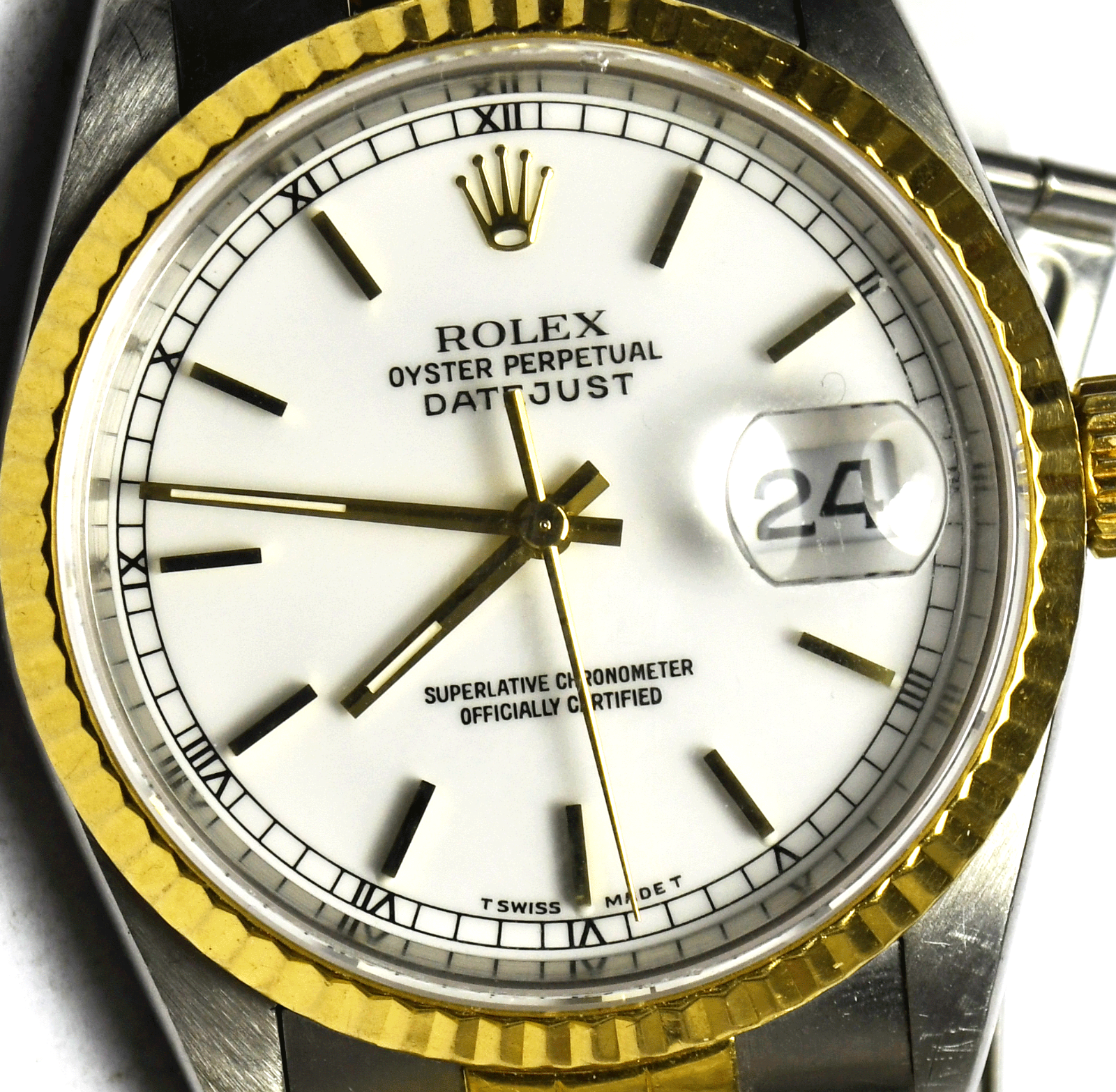 1996 Men's Rolex Datejust 16233 White Stick Dial 36mm 18k Jubilee Band 3135