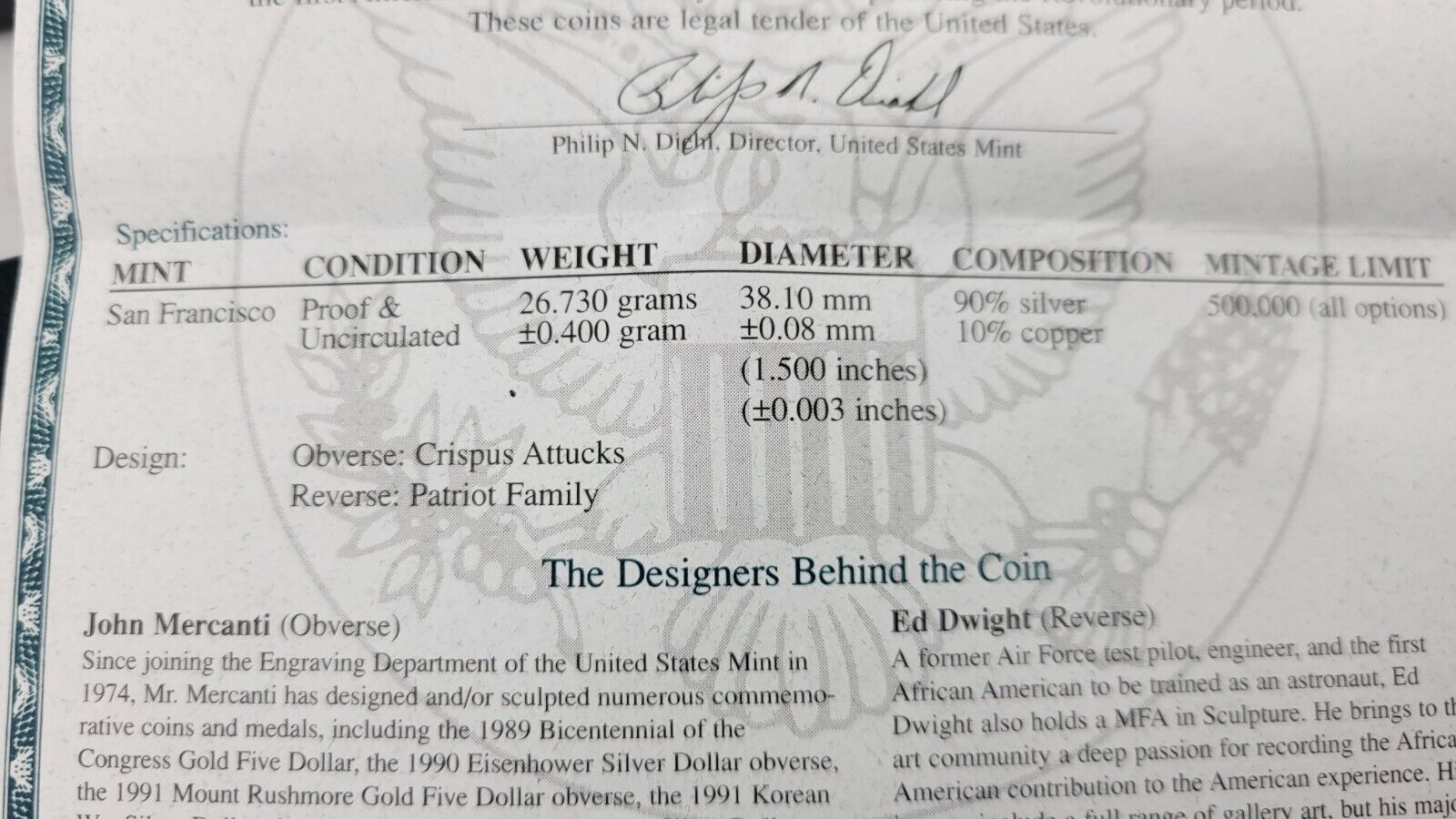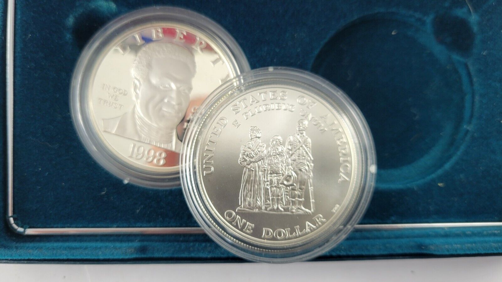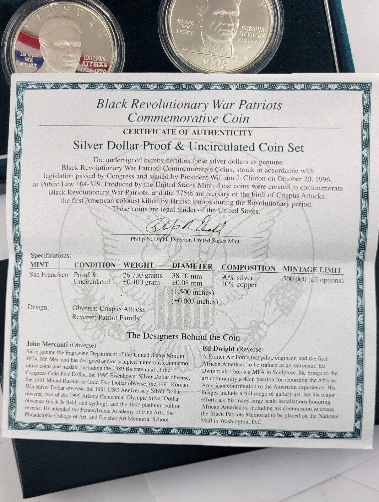 1998 S Black Revolutionary War Patriots Commemorative 2pc Silver Dollar Coin Set