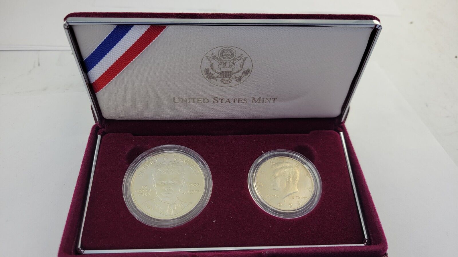 1998 S Kennedy Commemorative Collector's BU Silver Matte Boxed 2pc Set no COA