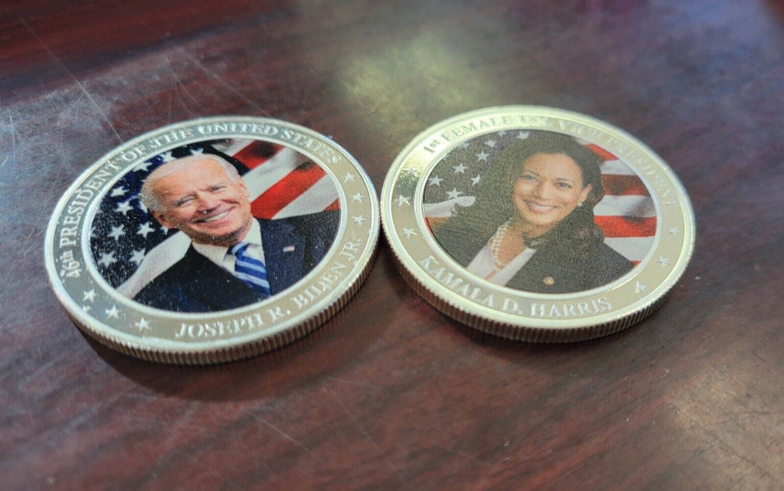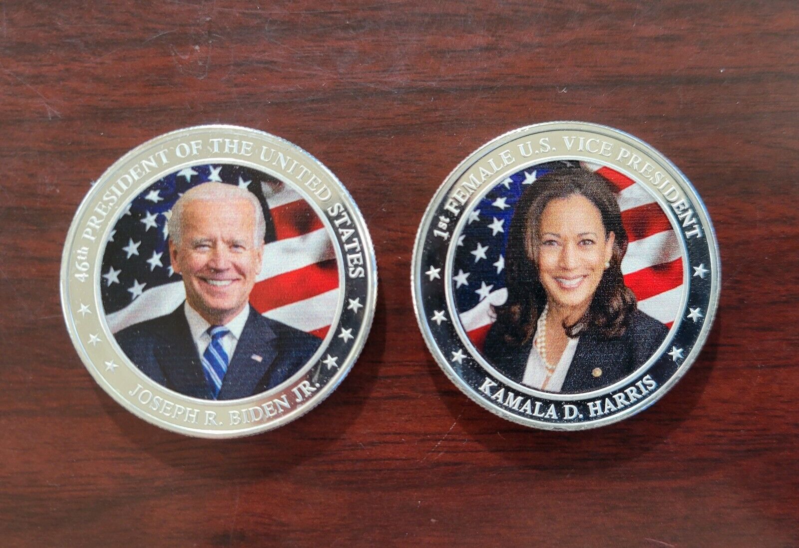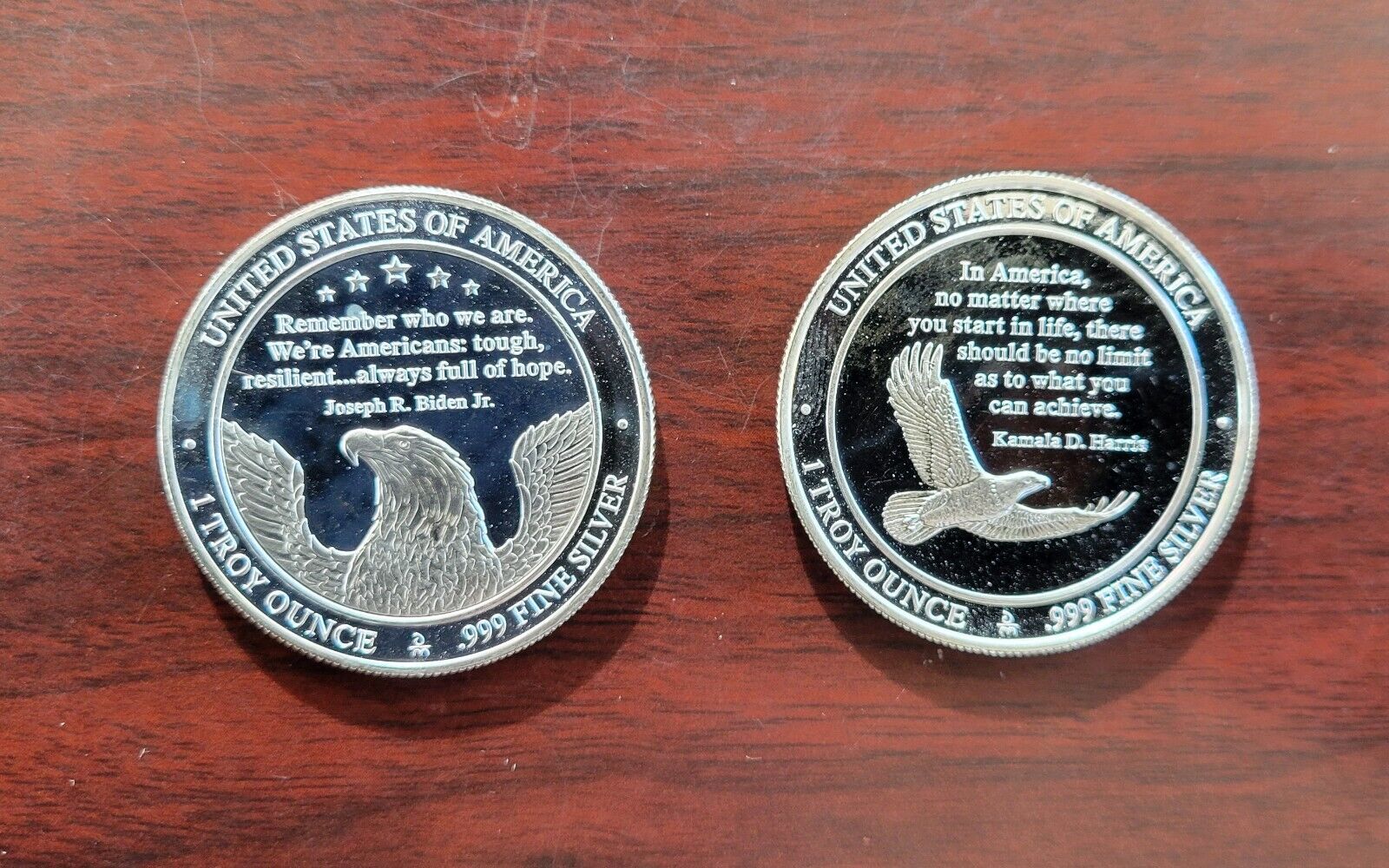 (2) .999 Fine Silver Joe Biden & Kamala Harris 2021 Round Danbury Mint 1oz Each