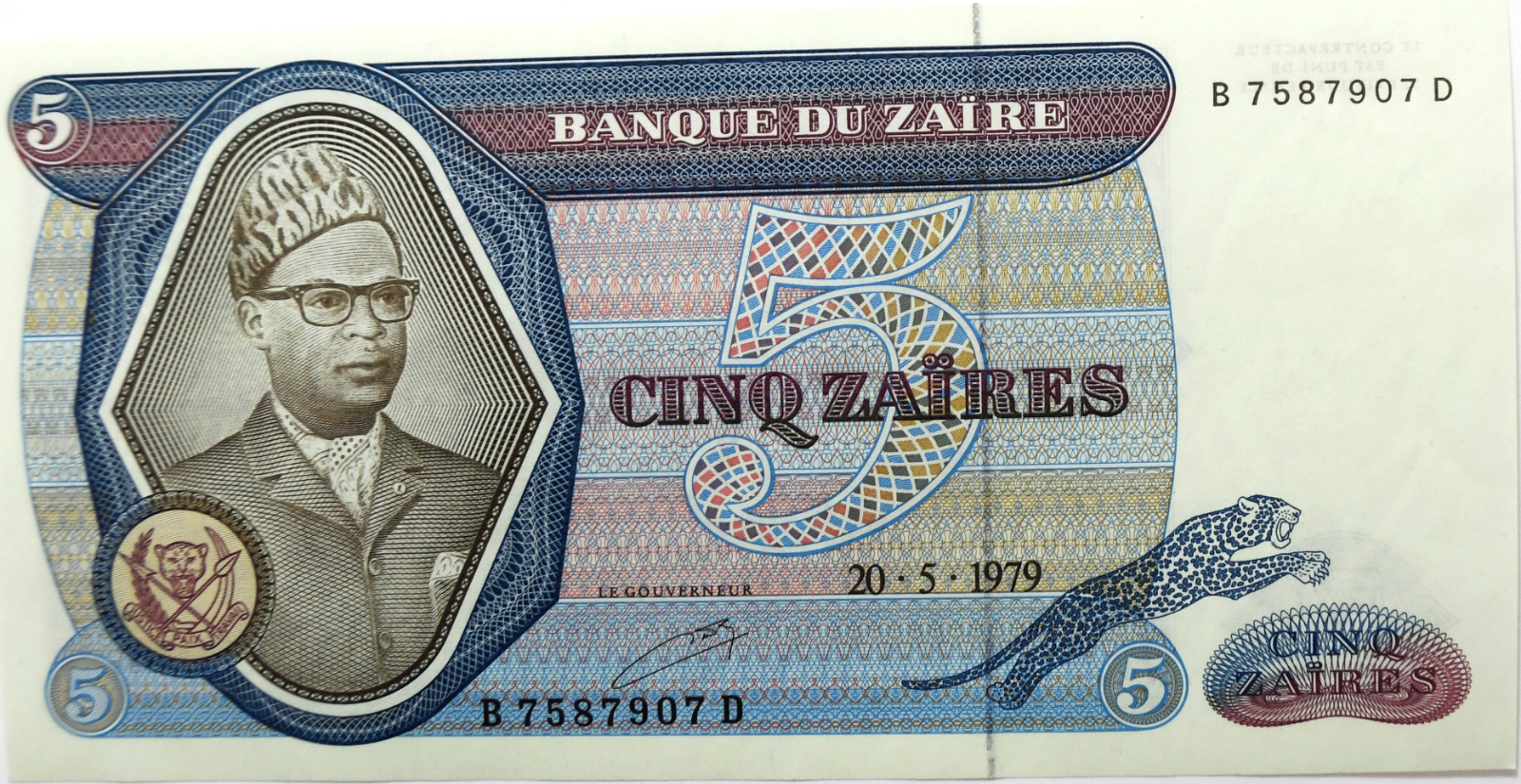 20-5-1979 Zaire 5 Five Zaires Banknote B7587907D Uncirculated