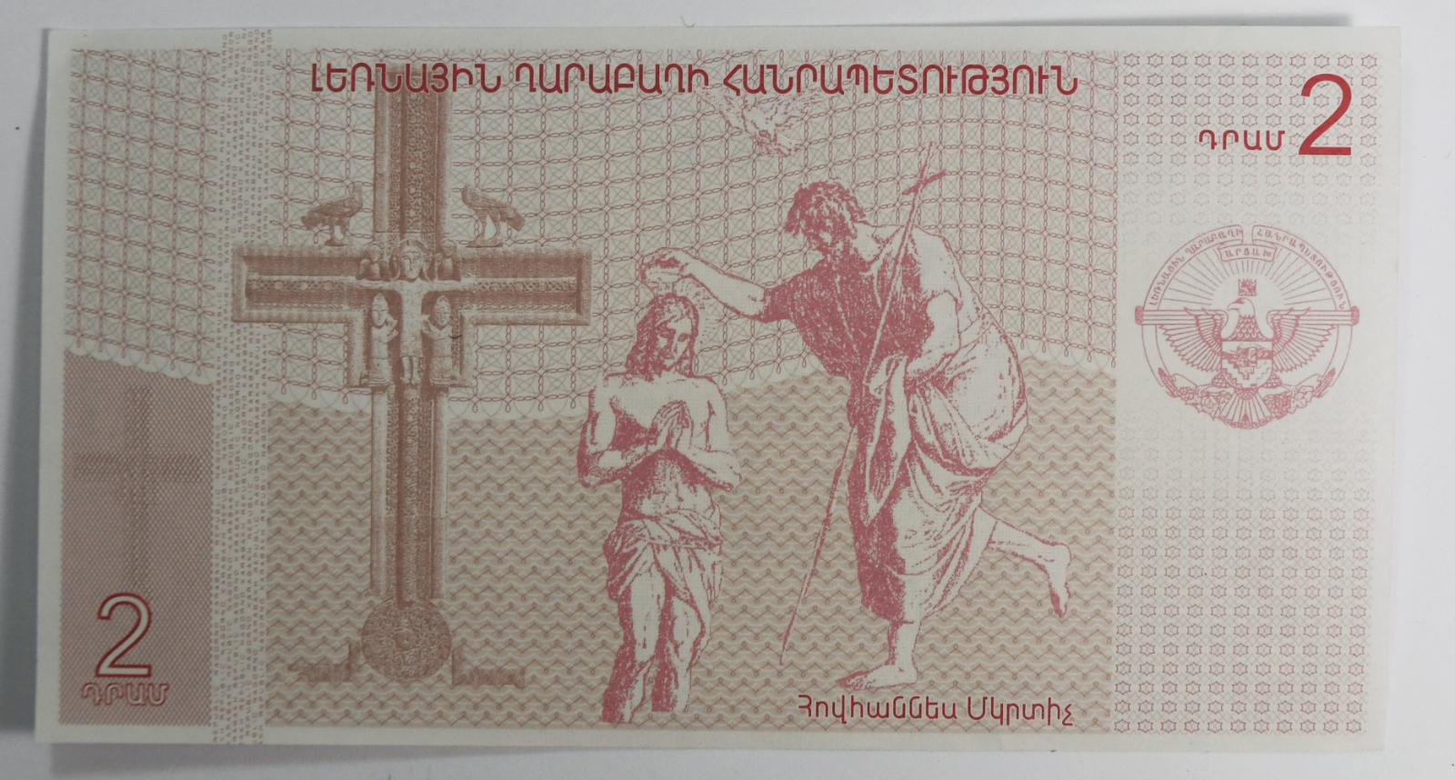 2004 Armenia 2 Drahms Uncirculated Bannote Nagorno Karabakh Jesus 00355279