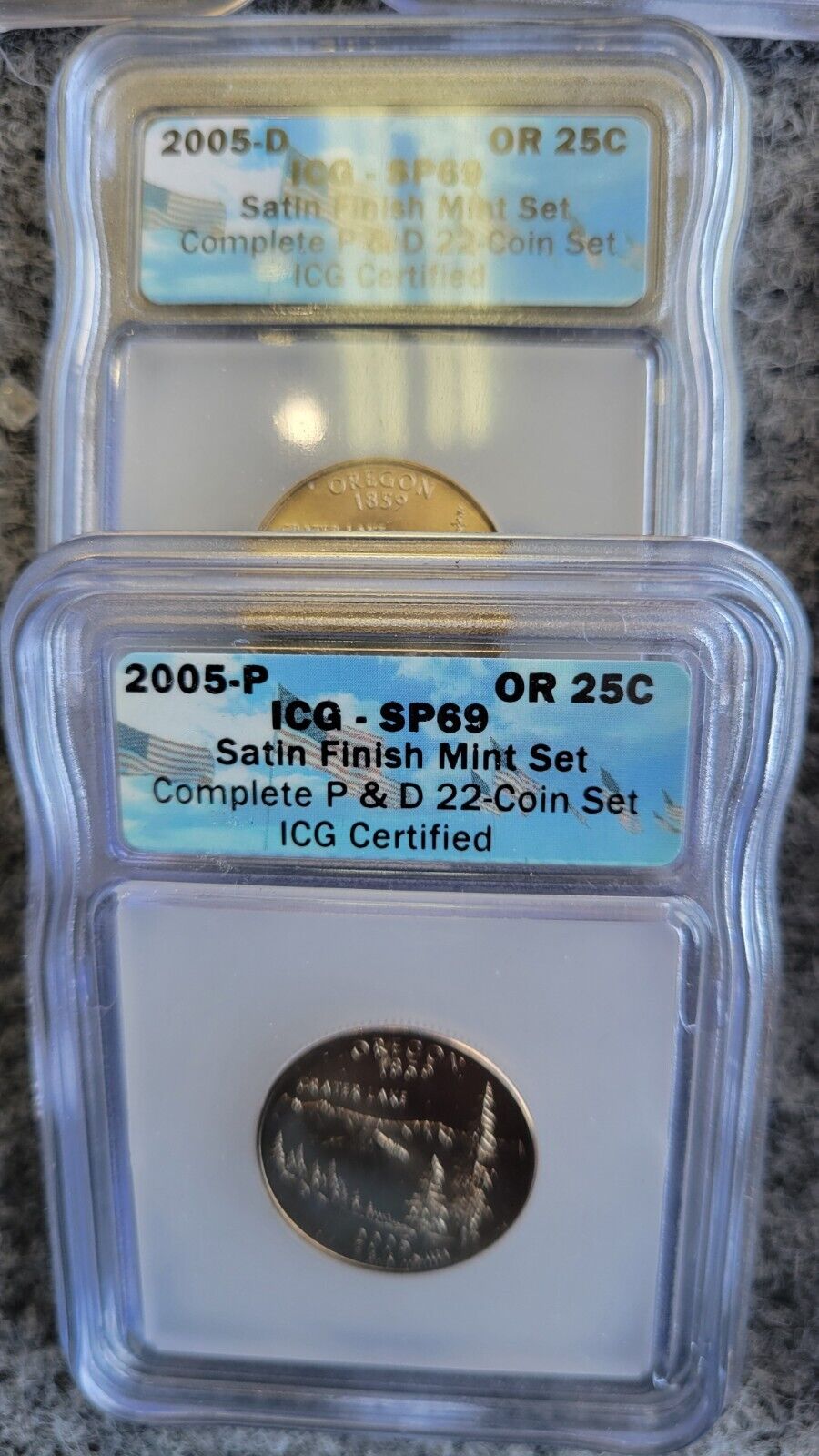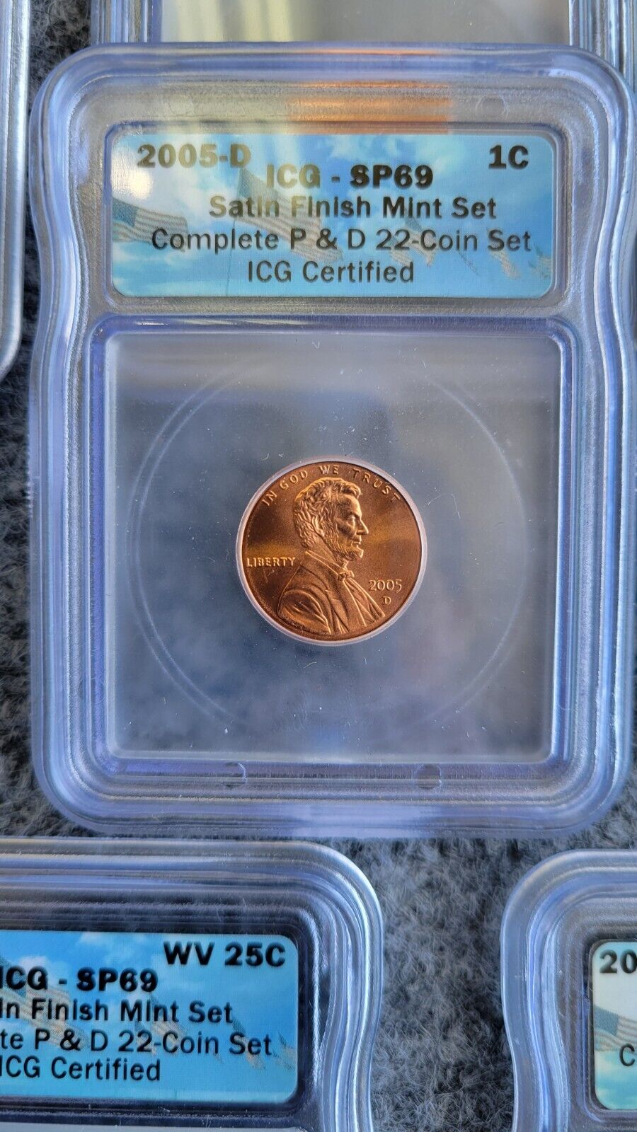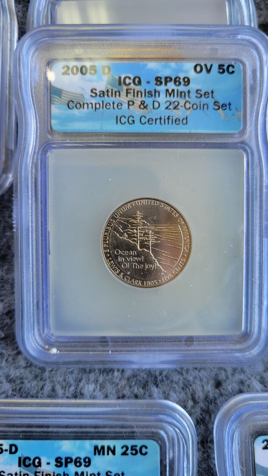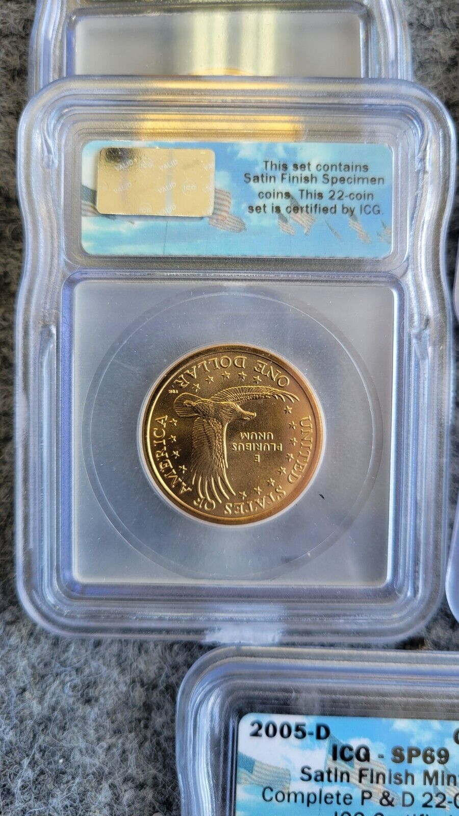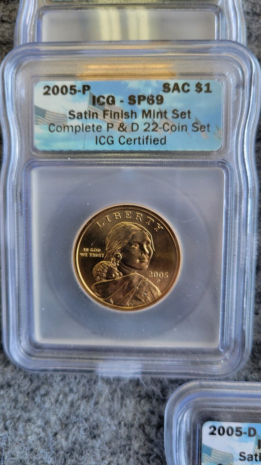 2005-P & D Satin ICG SP69 Set Sacagawea, Cent, Dime, Half, Quarter, Nickel 22pc