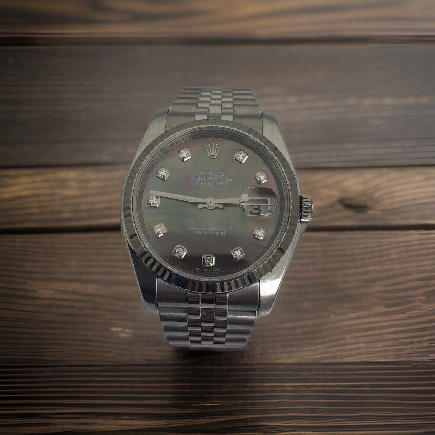 2008 Men's Rolex Datejust 116234 Tahitian MOP Diamond Dial 36mm S/S 3135 Auto