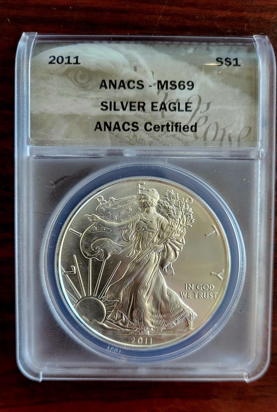 2011 (P) $1 American Silver Eagle ANACS MS69 Silver Dollar .999 Fine Silver 1oz.