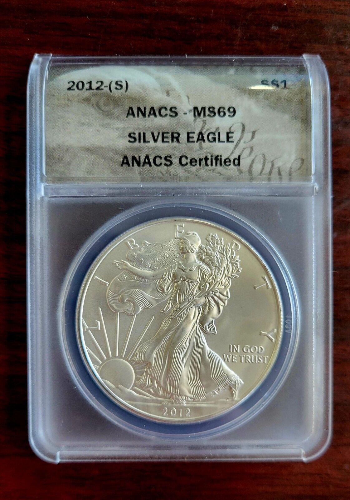 2012 (S) $1 American Silver Eagle ANACS MS69 Silver Dollar .999 Fine Silver 1oz.
