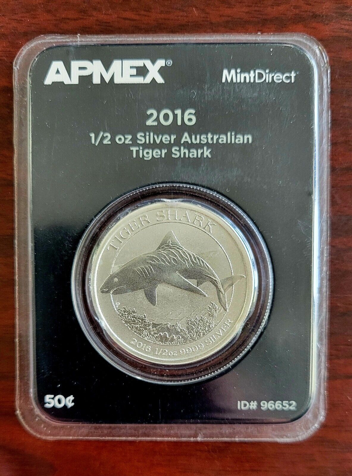 2016 Australian Mint Tiger Shark 1/2 Ounce 999 Pure Silver Round Coin APMEX