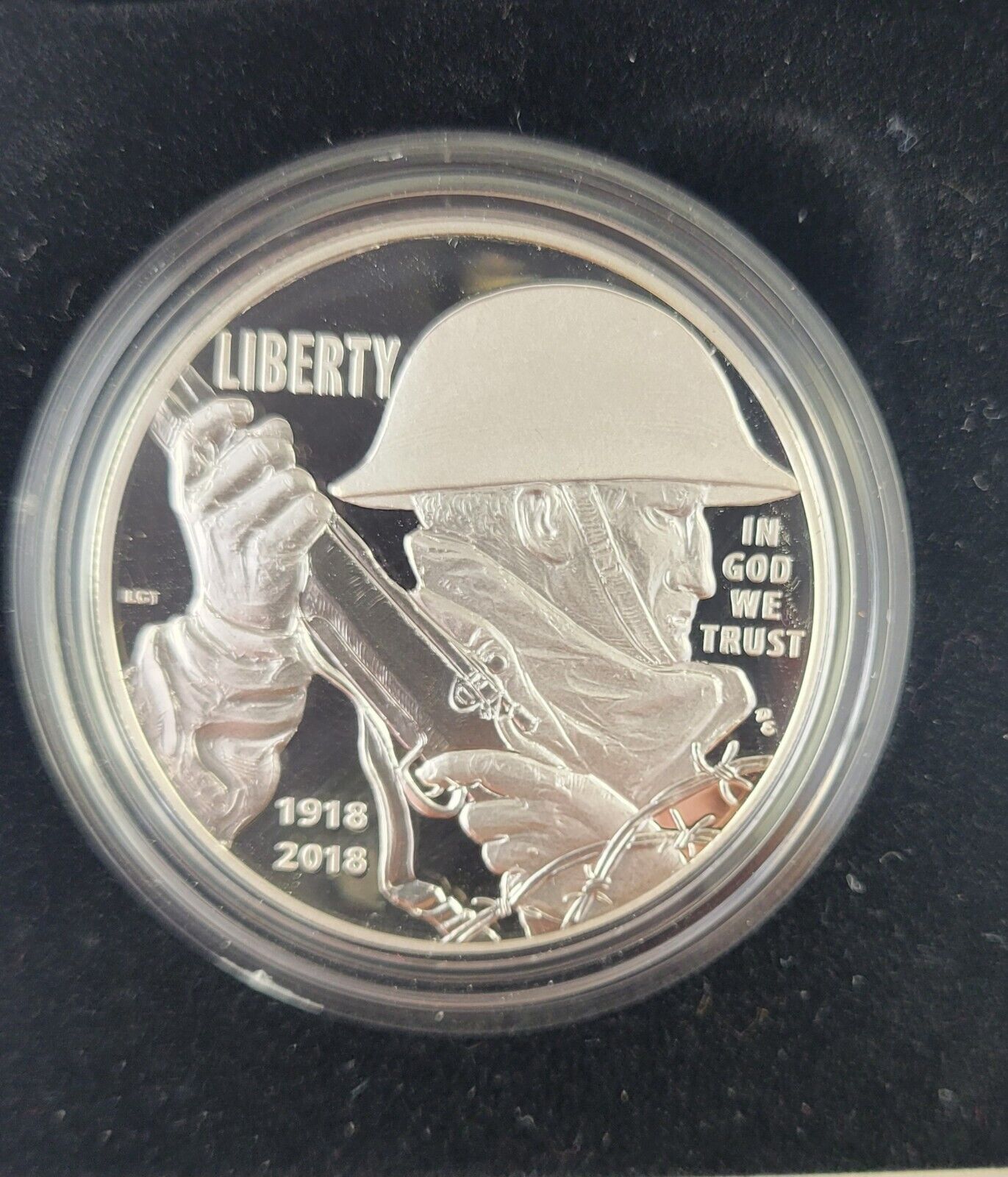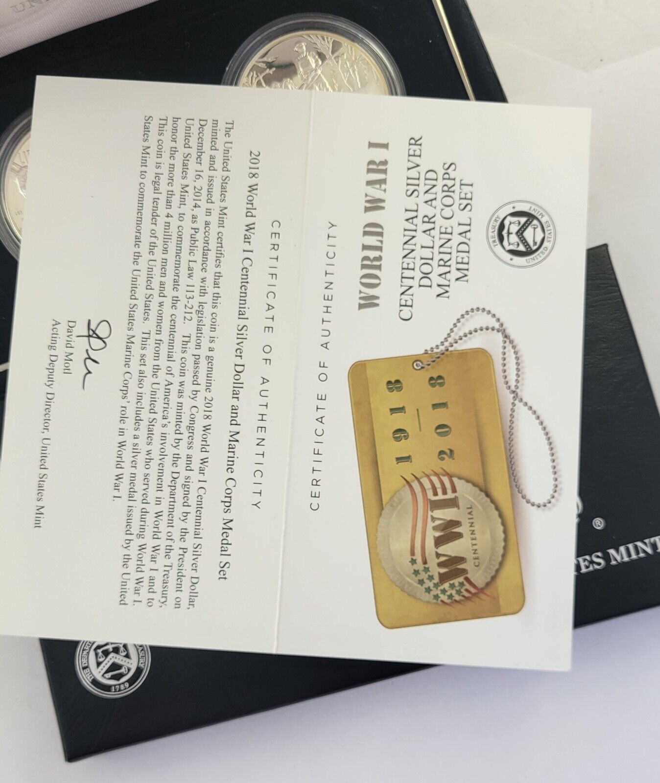 2018 World War I Centennial Silver Dollar and Marine Corps Medal Set w/COA Boxed