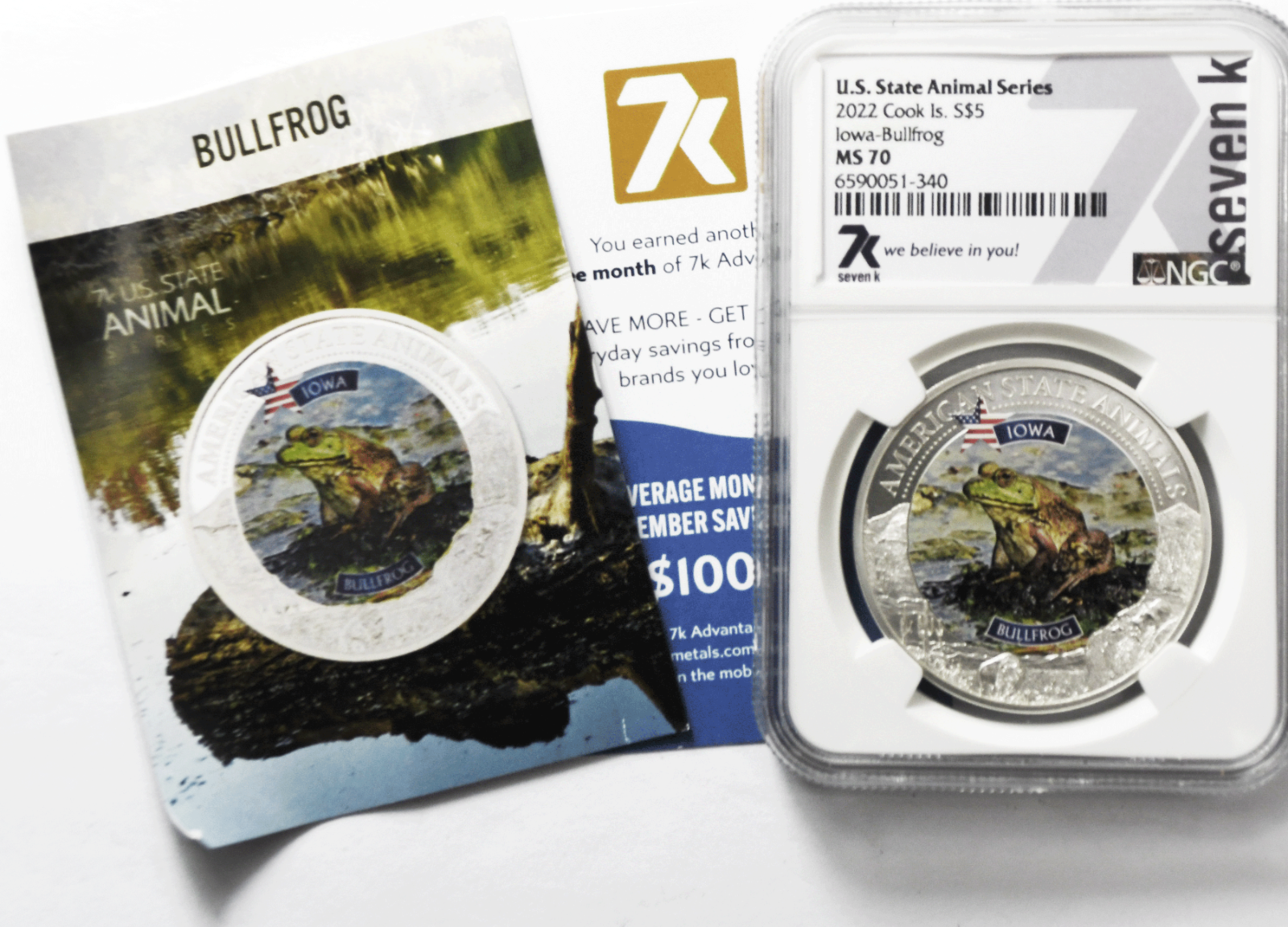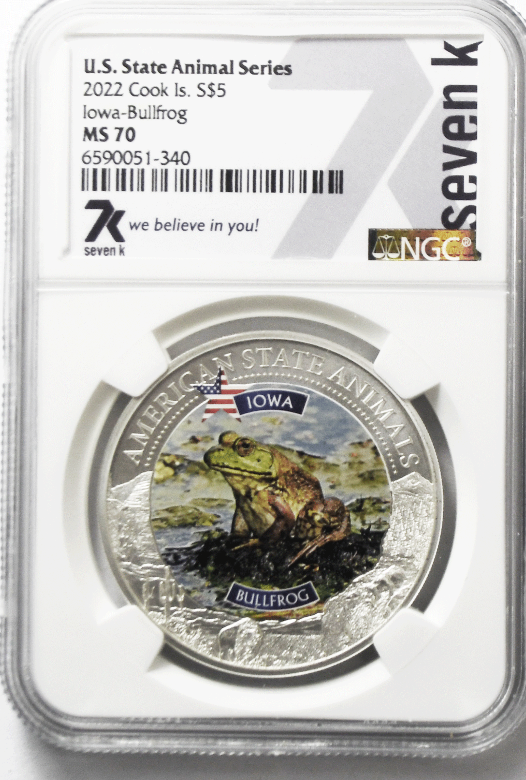2022 $5 Cook Is Animal Series 7k w Card NGC MS70 Iowa Bullfrog