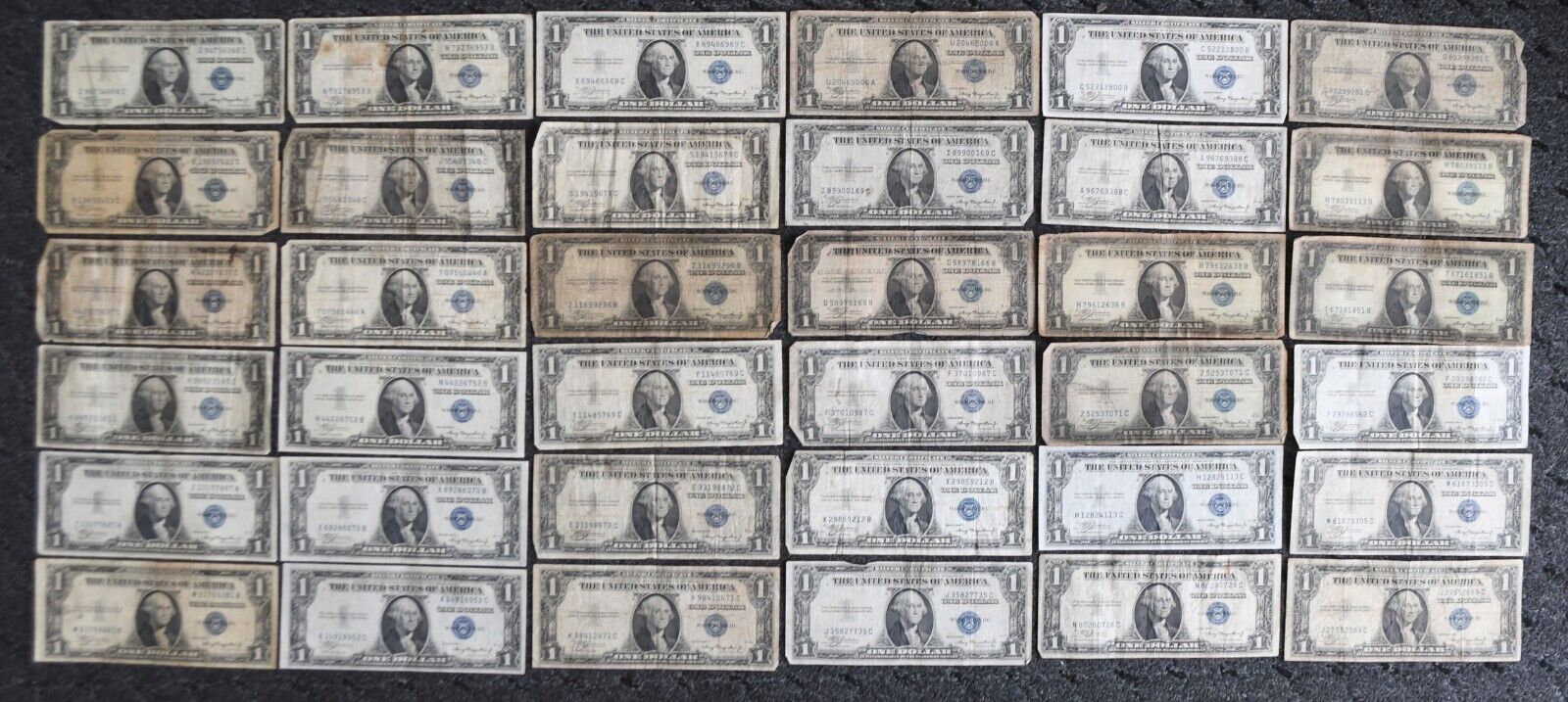 36- 1935 A $1 One Dollar Silver Certificate Blue Seal Notes Lot 1935A