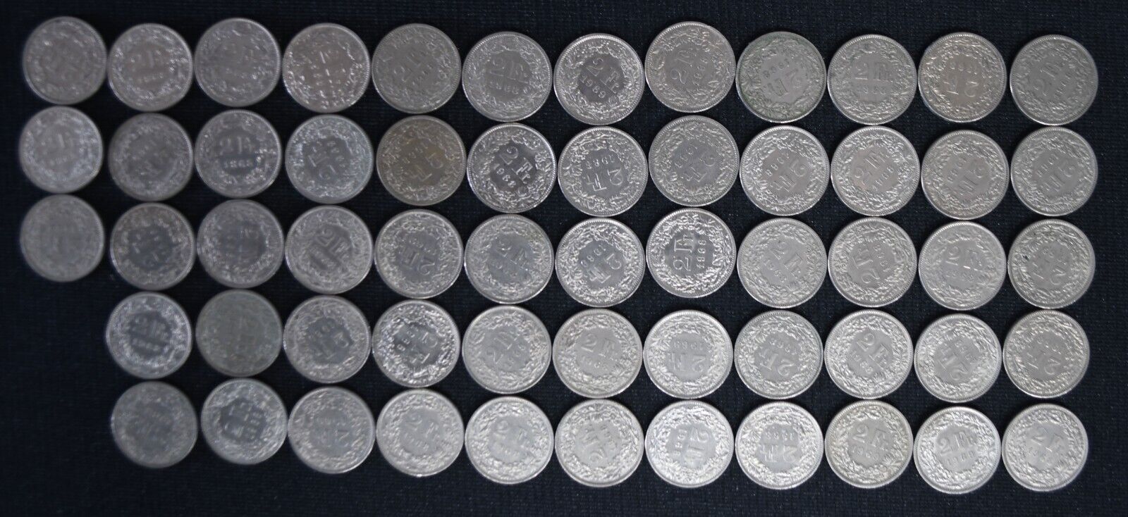 58pc Switzerland 2 Two Francs Coin Lot 1968 & 1969 KM#21a.1