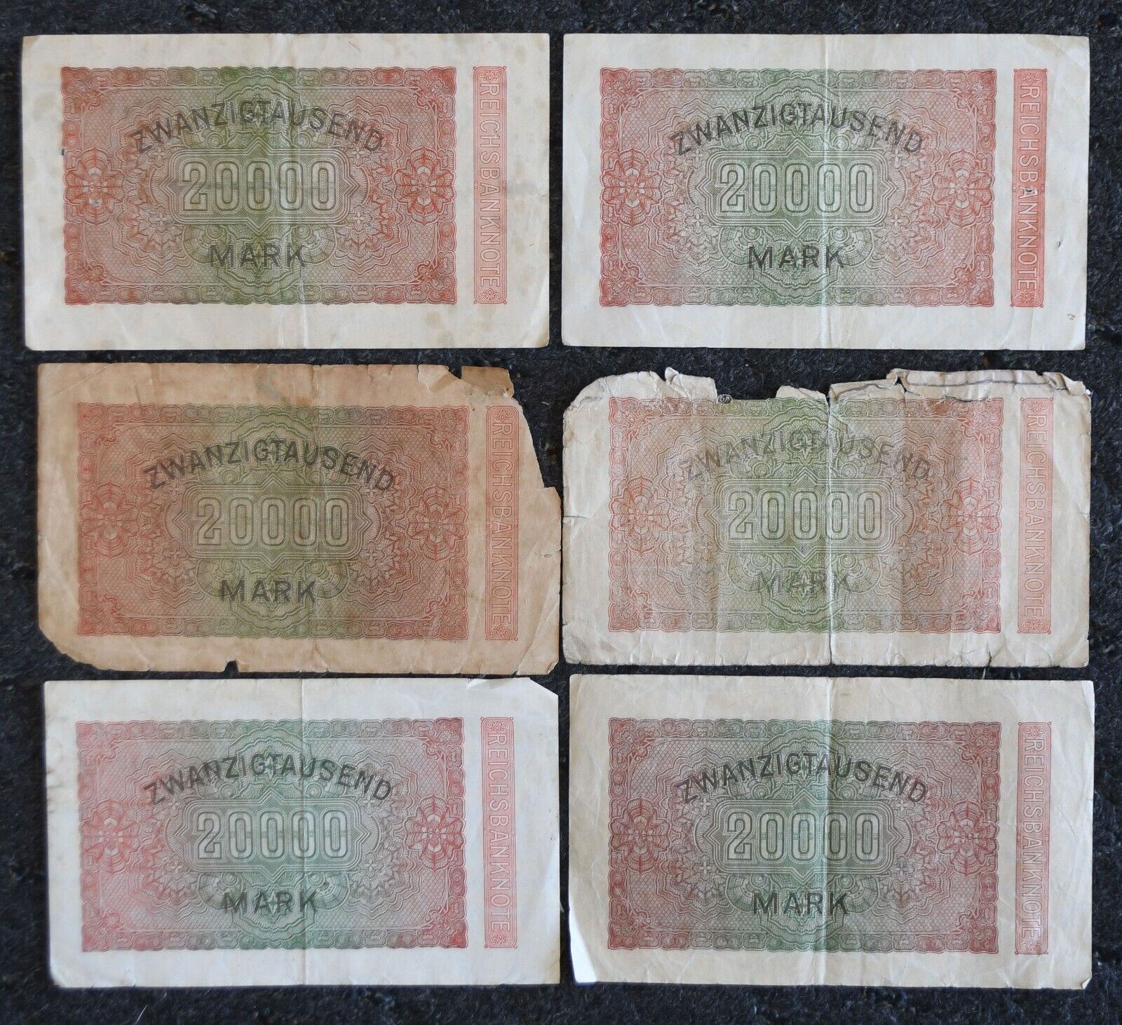 6- 1923 Germany 20,000 Mark Banknotes Fifth Issue