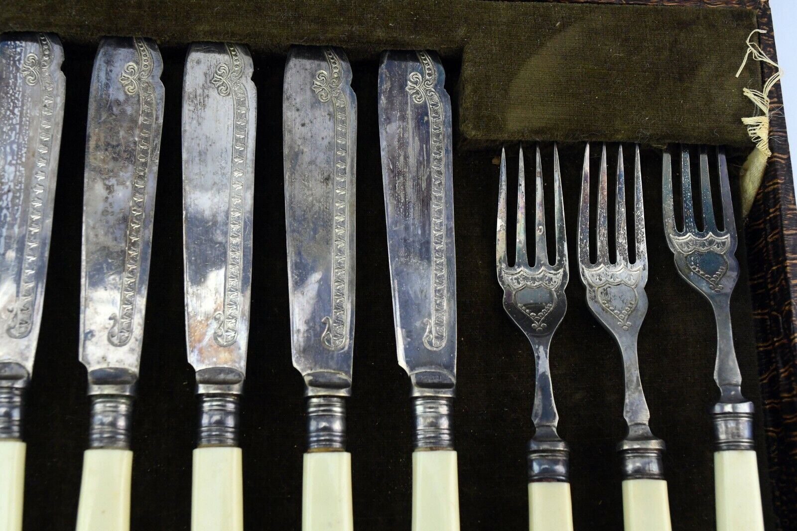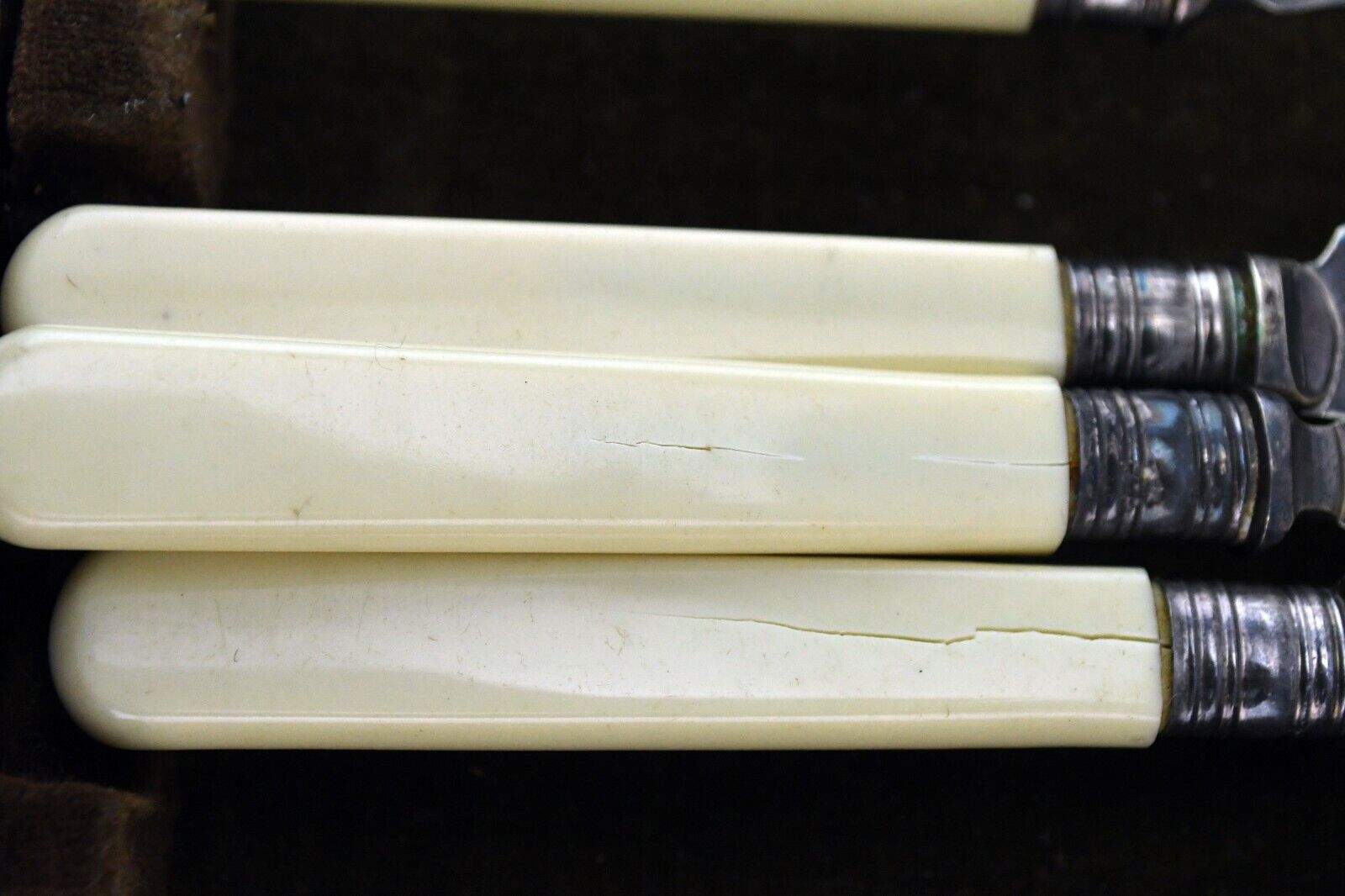 6 Place Setting EPNS England Set w/Serving Fish Utencils Silver Plate Boxed