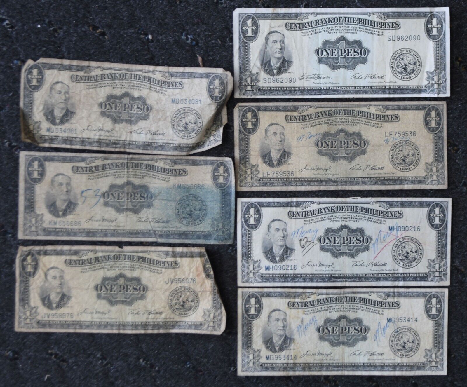 7- 1949 Central Bank of Philippines One Peso Banknotes Lot