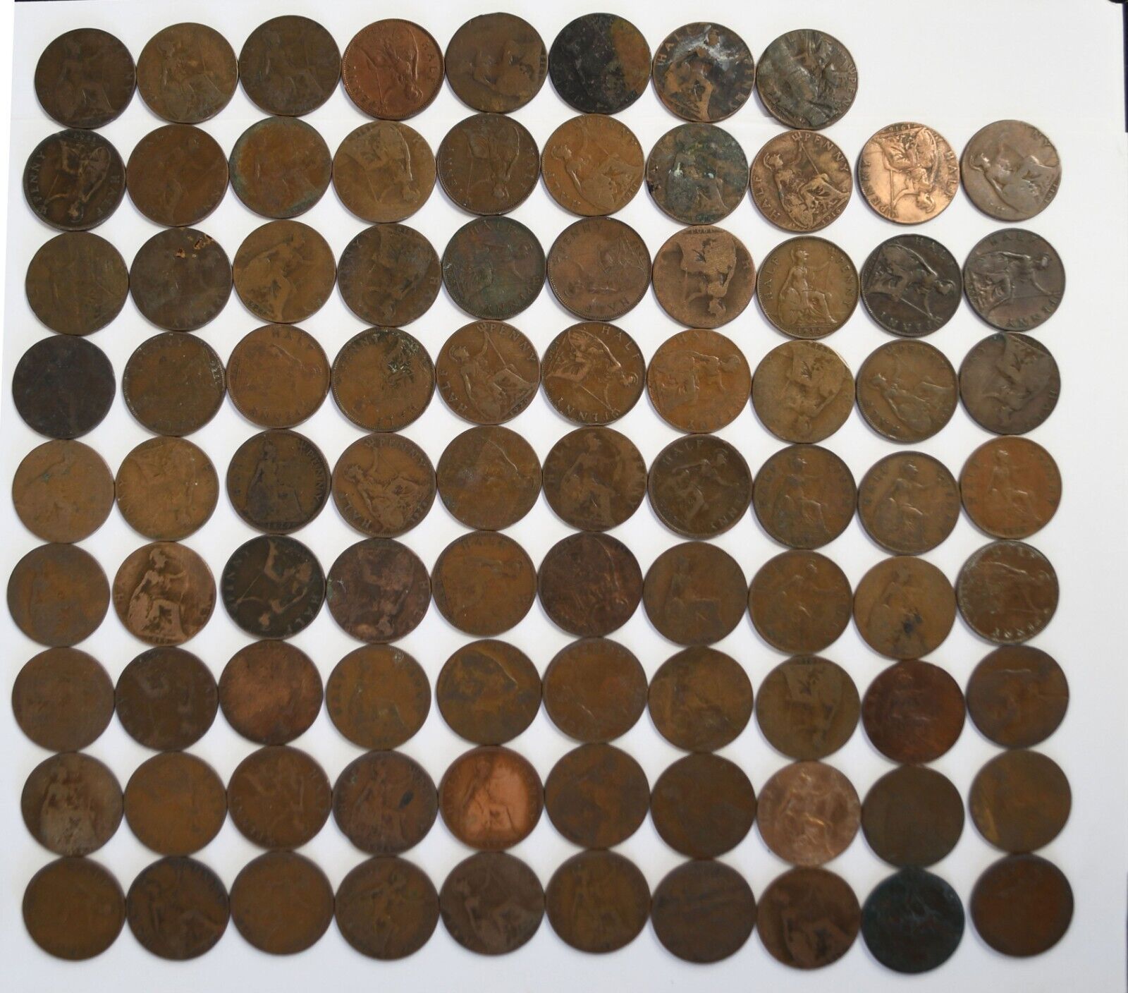 88pc 1c Great Britain 1/2 Half Penny Lot of Coins 1901-1936