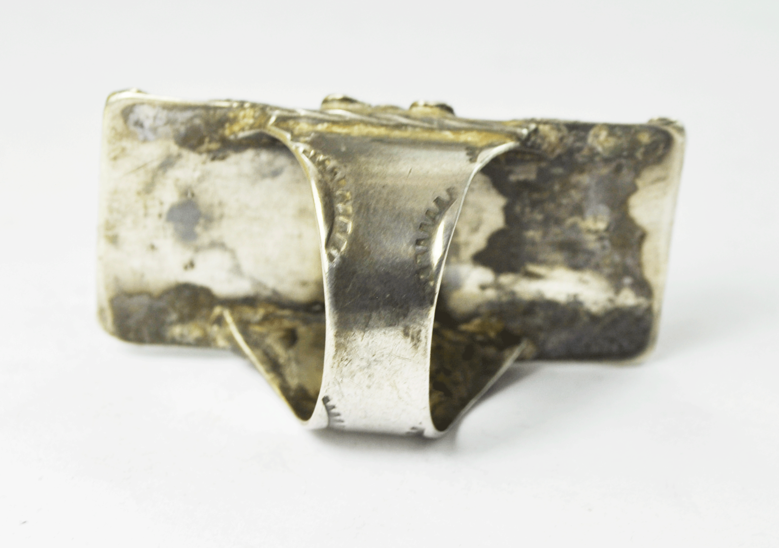 900 Fine Silver Turquoise Coral Shield Elongated Ring Floral Overlay 47mm Sz 9