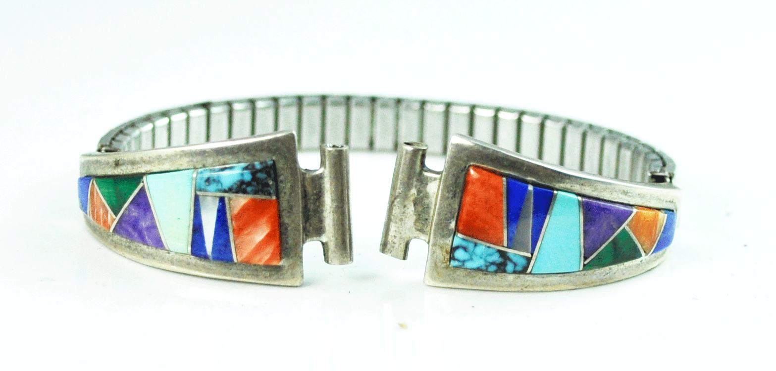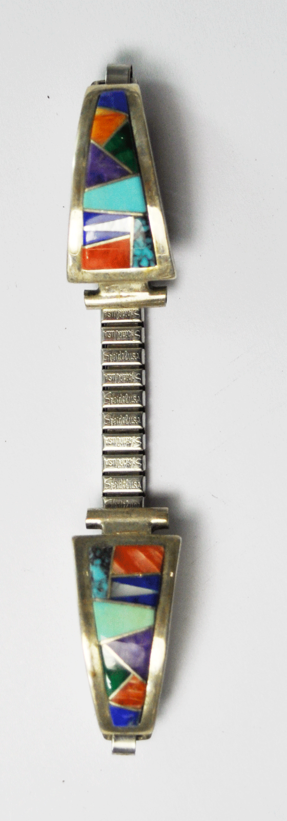 A Touch of Santa Fe Sterling Inlay Watch Band 12mm Lugs Stretch Band 6-1/4"