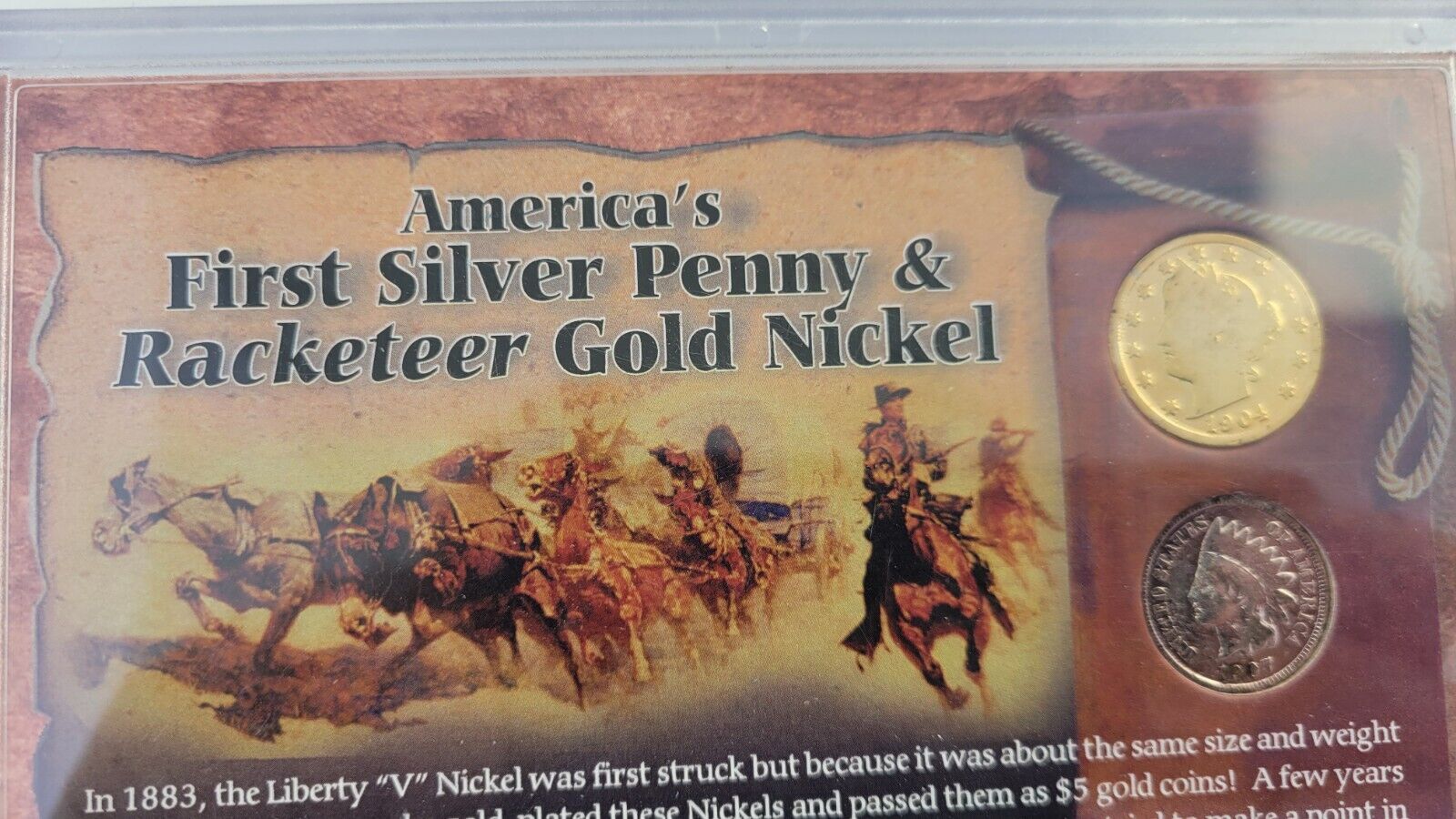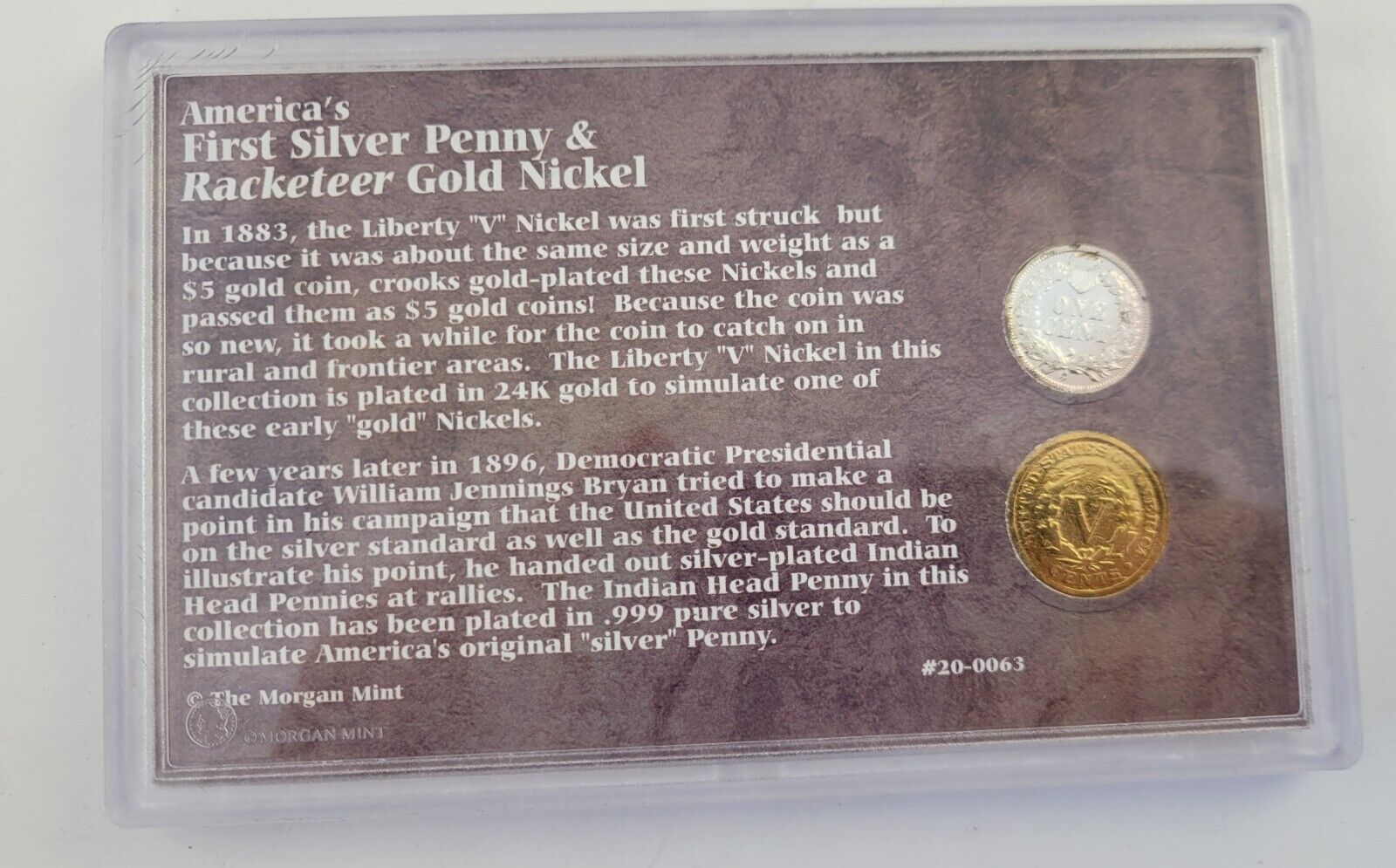 Americas First Silver Penny & Racketeer Gold Nickel From The Morgan Mint Set