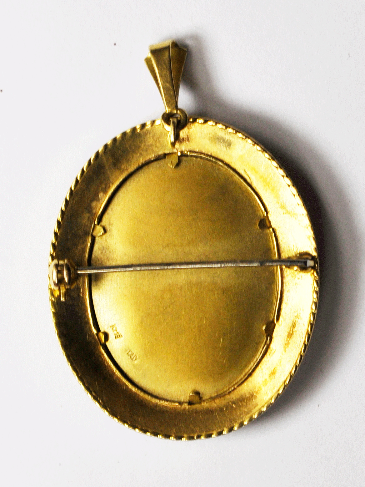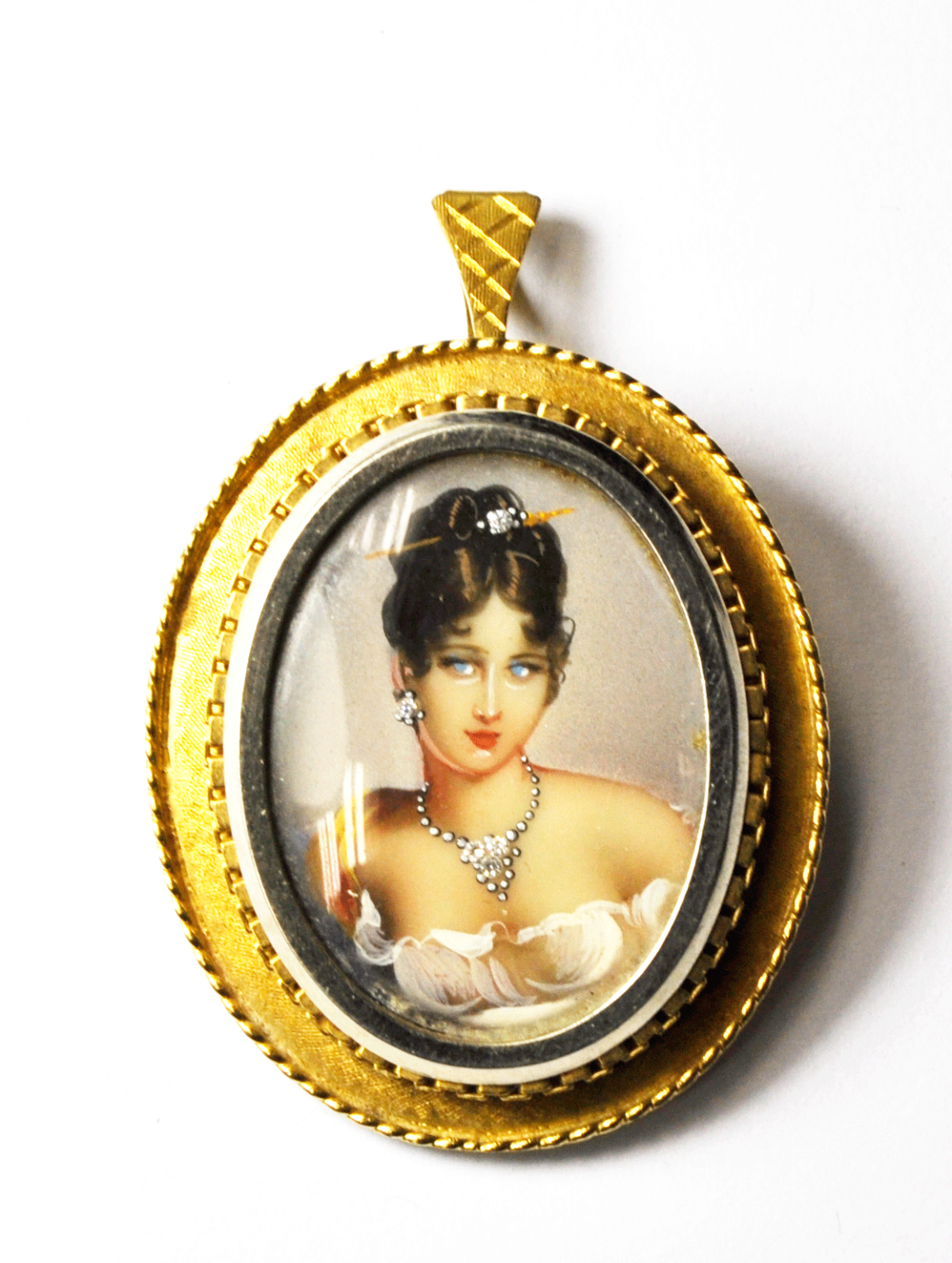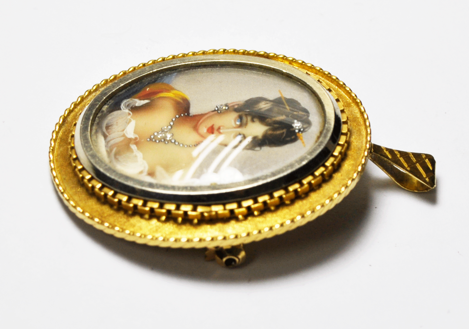 Antique Diamond Enamel Portrait Gold Pin Pendant Beautiful Bust 34mm X 40mm
