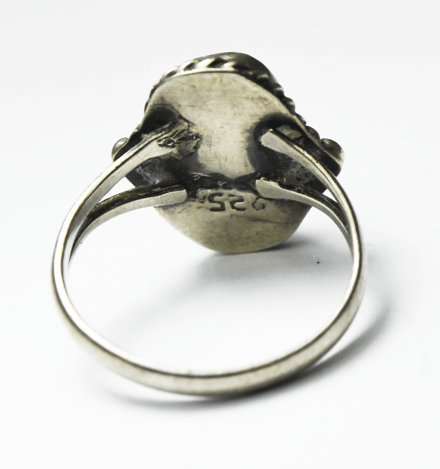 Antique Sterling Oval Turquoise Ring 17mm Size 6-1/2