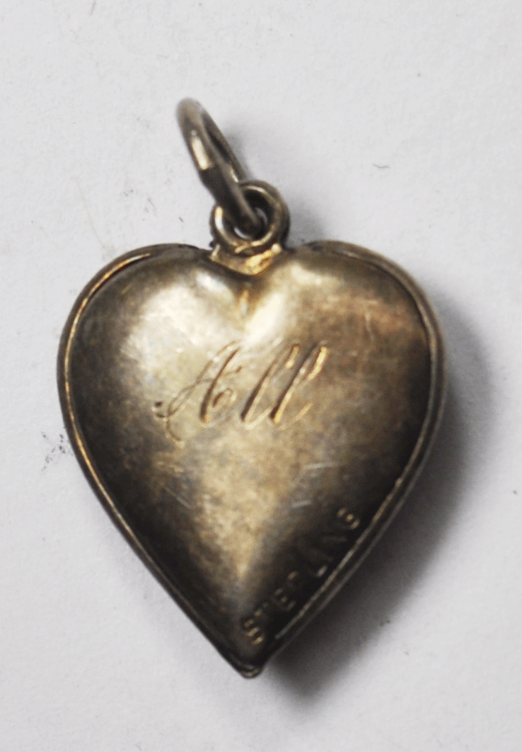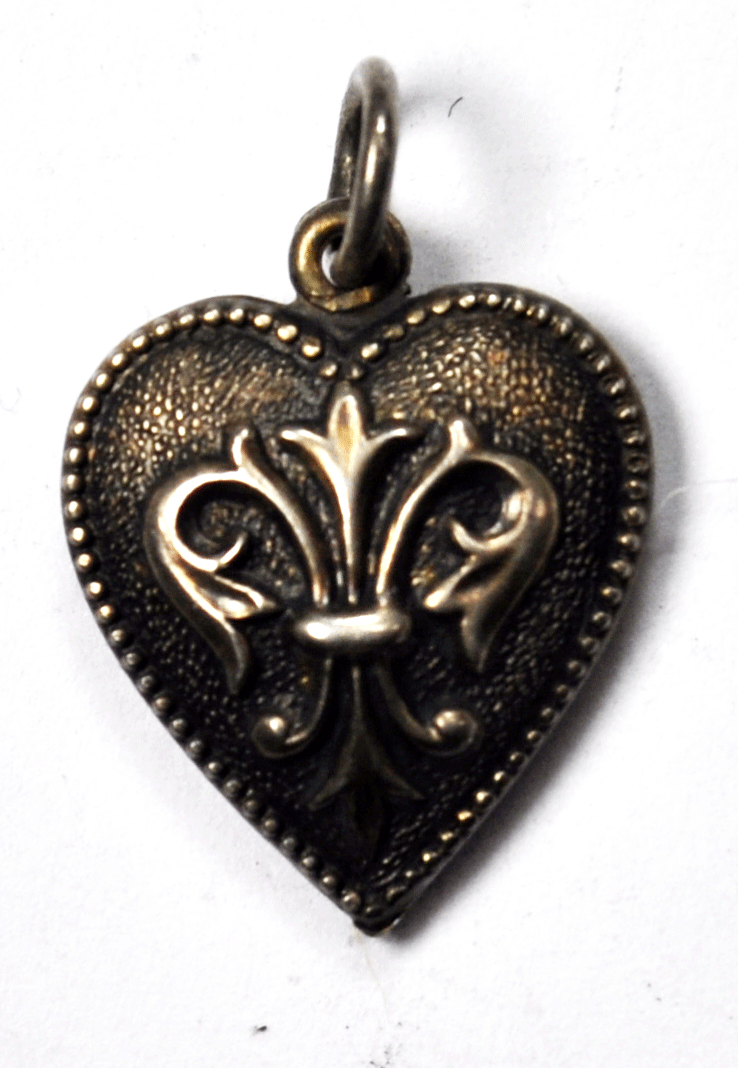 Antique Sterling Puffy Heart Charm Fleur De Lis 18mm x 15mm Monogrammed