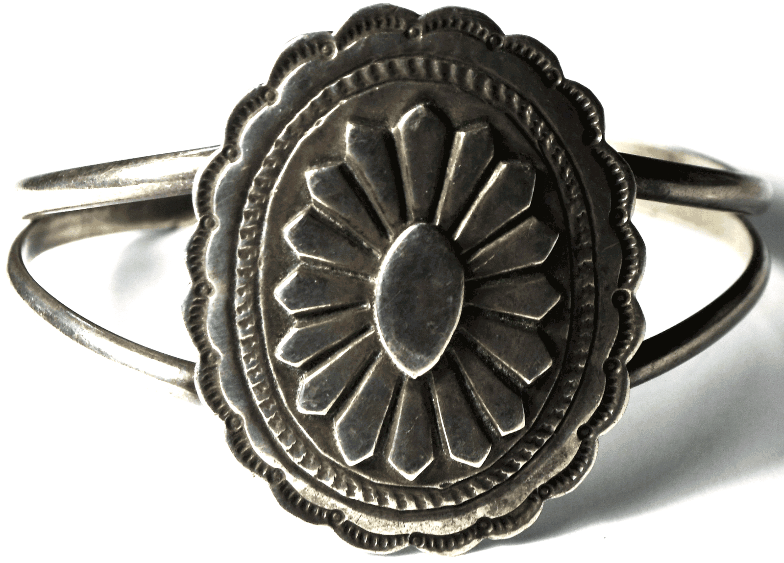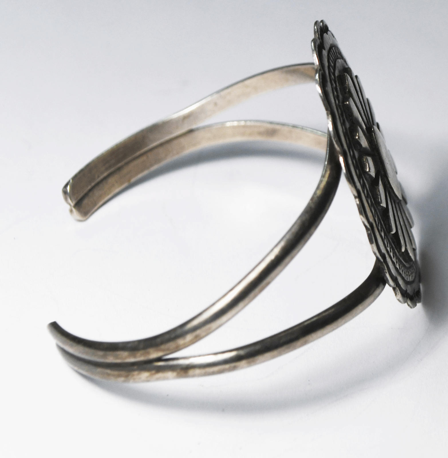 Antique Sterling Signed R Concho Oval Cuff Bracelet 41mm 6-3/4" Wrist