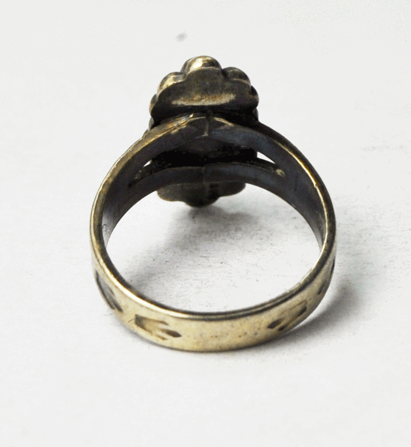 Antique Sterling Silver 1930's Turquoise Etched Ring 16mm Size 2