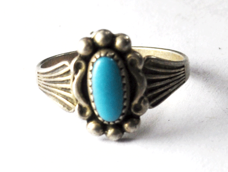 Antique Sterling Silver Blue Turquoise Solitaire Ring 12mm Size 3-1/2 Signed JP