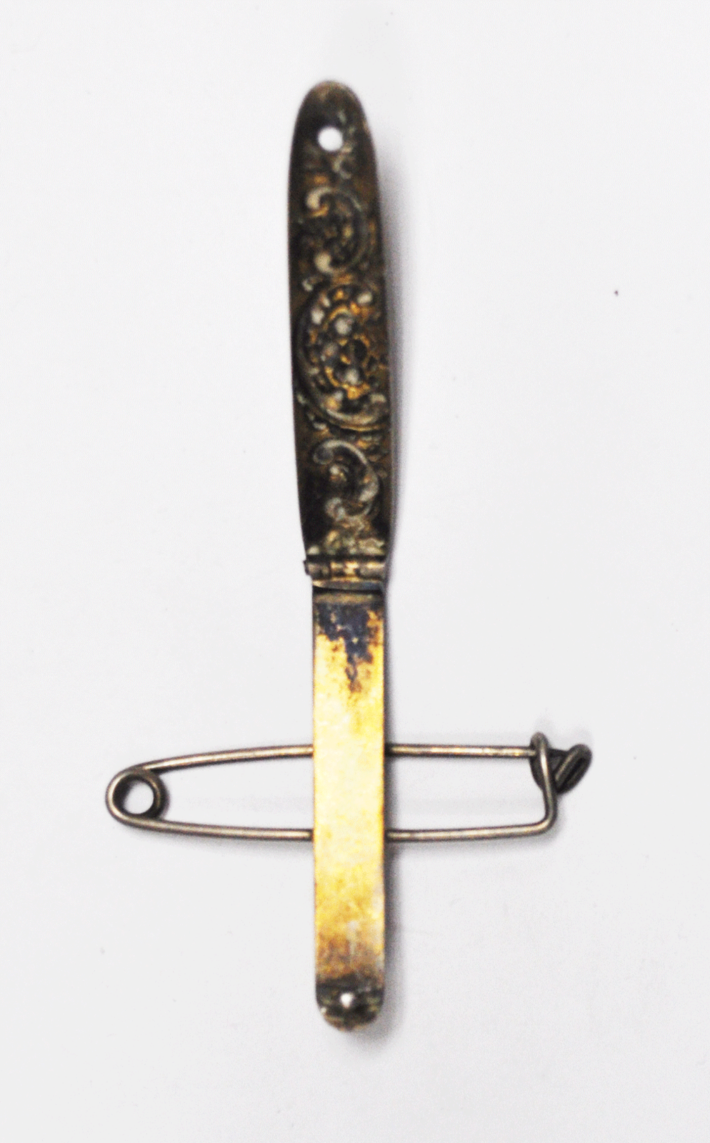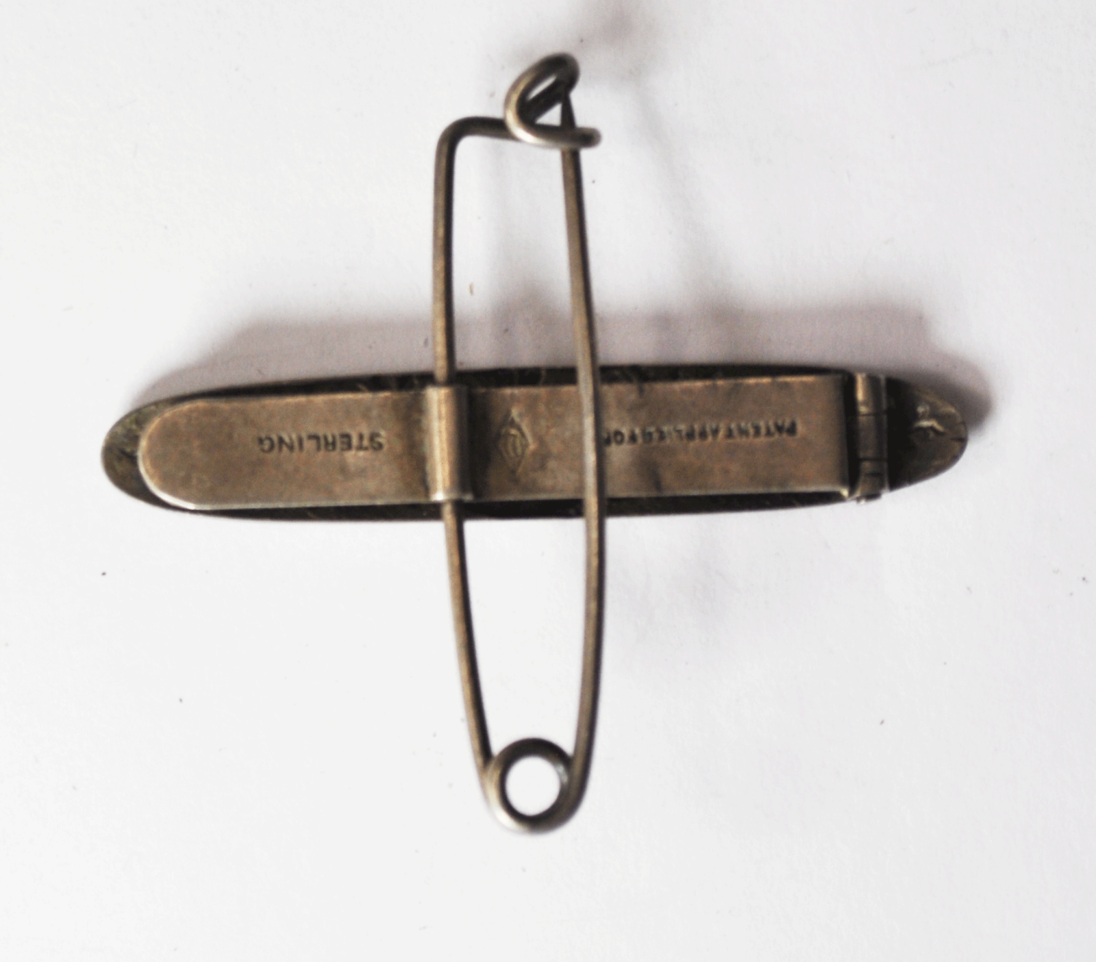 Antique Sterling Silver Floral Safety Pin Clip Repousse 2-1/4" x 2"