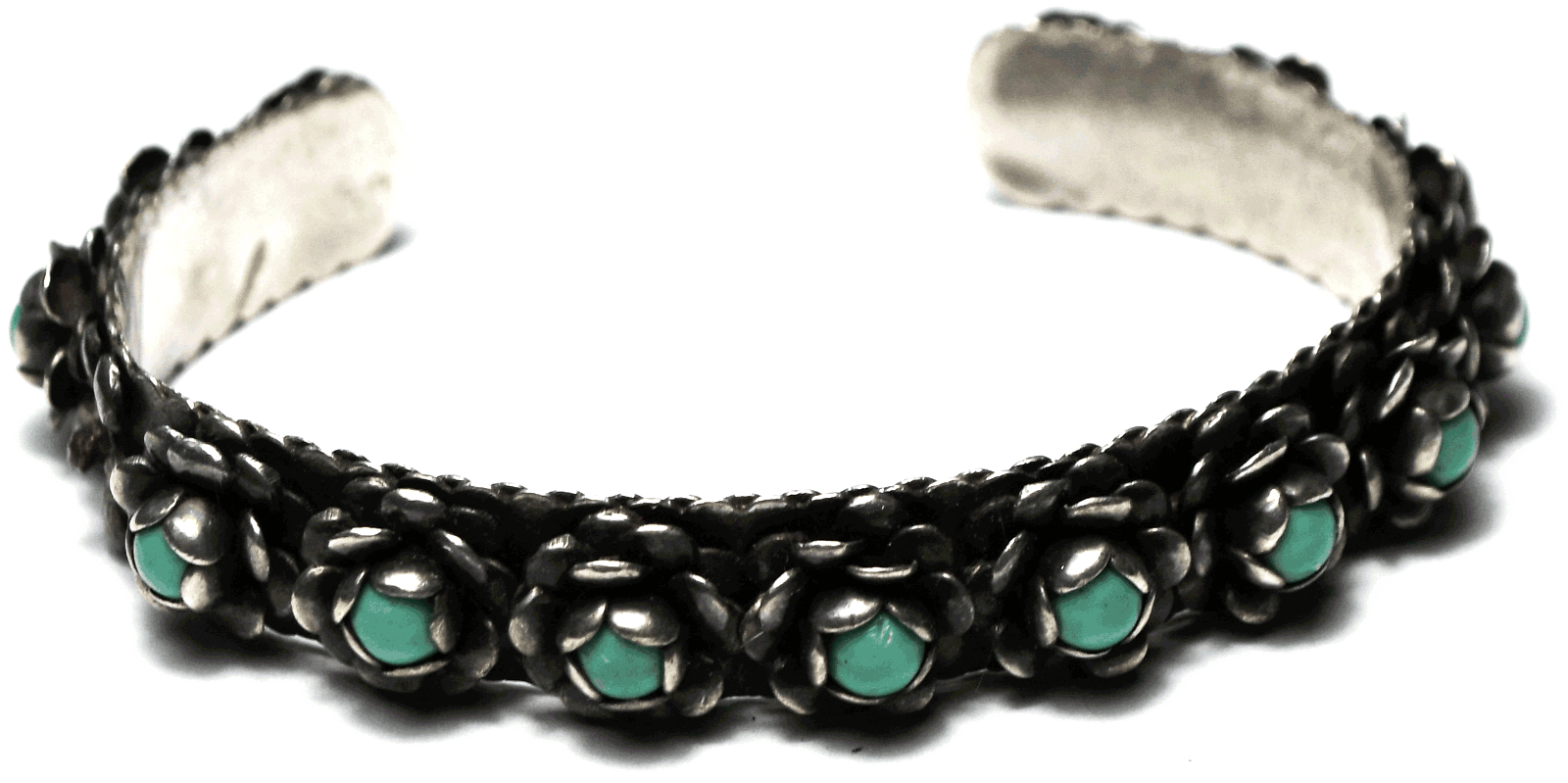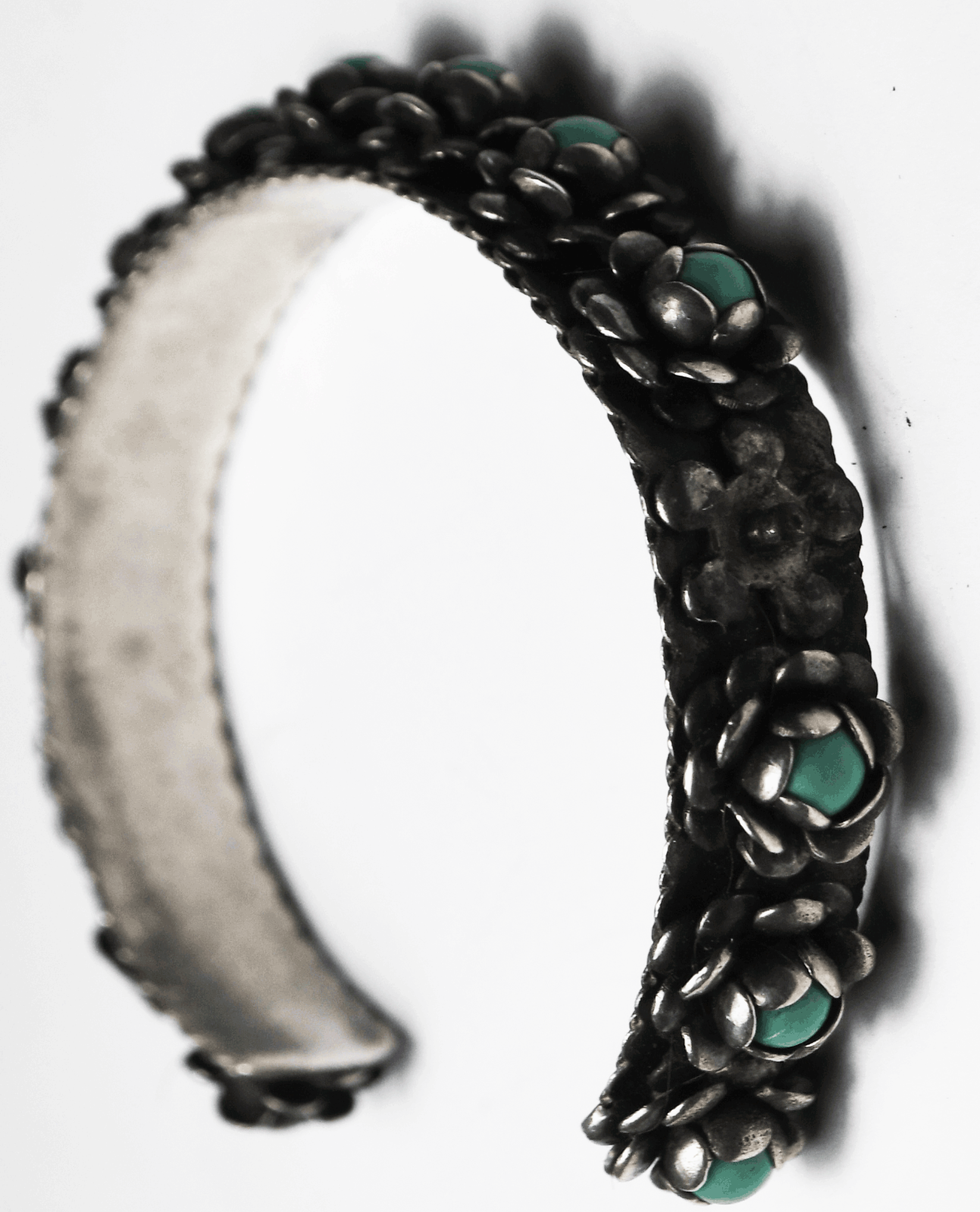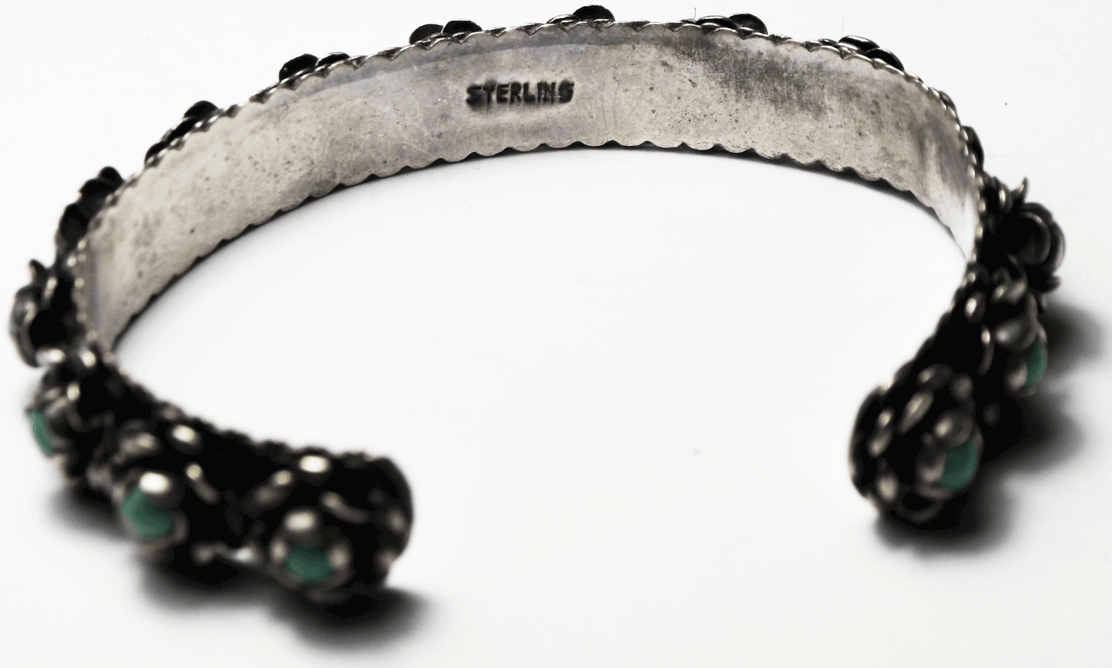 Antique Sterling Silver Flower Cuff Bracelet 9mm 5-3/4" Wrist 16g Missing Flower