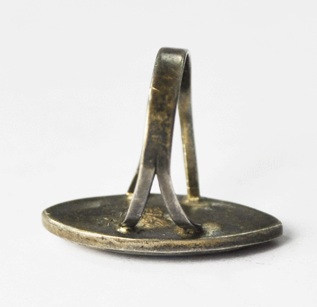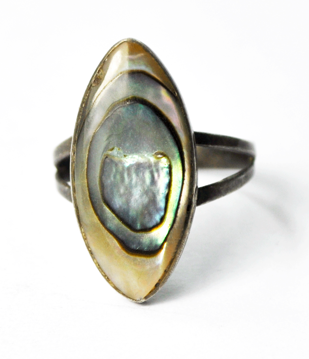 Antique Sterling Silver Mexico HNT Abalone Ellipse Solitaire Ring 23mm Size 5