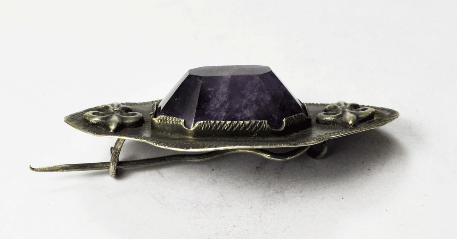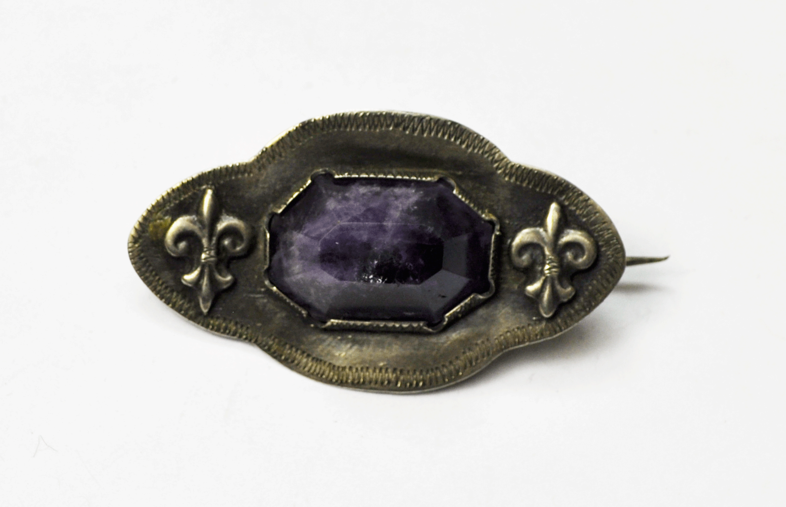 Antique Sterling Silver Mexico Purple Amethyst Fleur De Lis Brooch Pin 2" 29mm