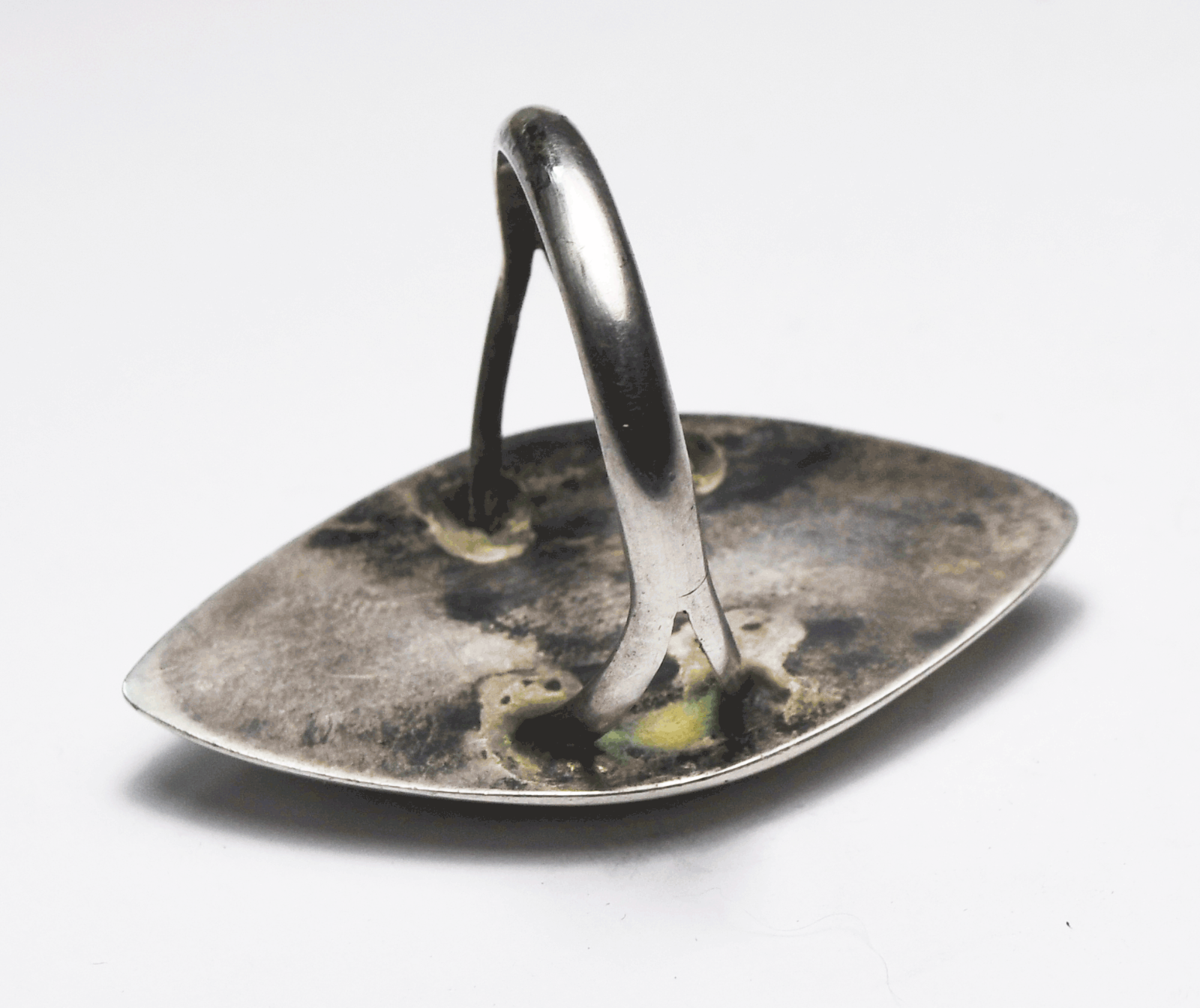 Antique Sterling Silver Shadow Box Ellipse Turquoise 41mm Ring Size 13