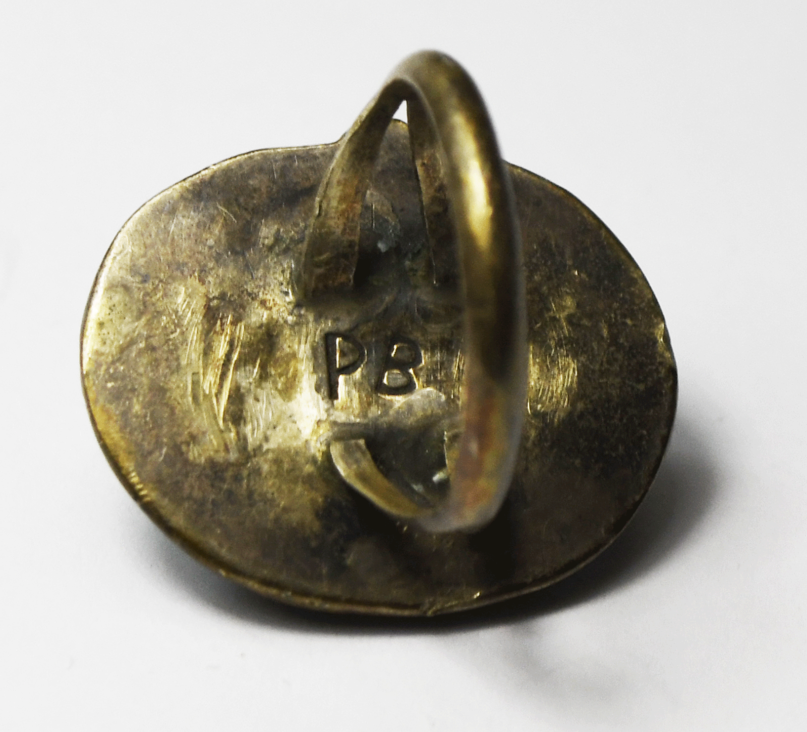 Antique Sterling Silver Turquoise Chunk Signed PB Ring 26mm Size 7-3/4