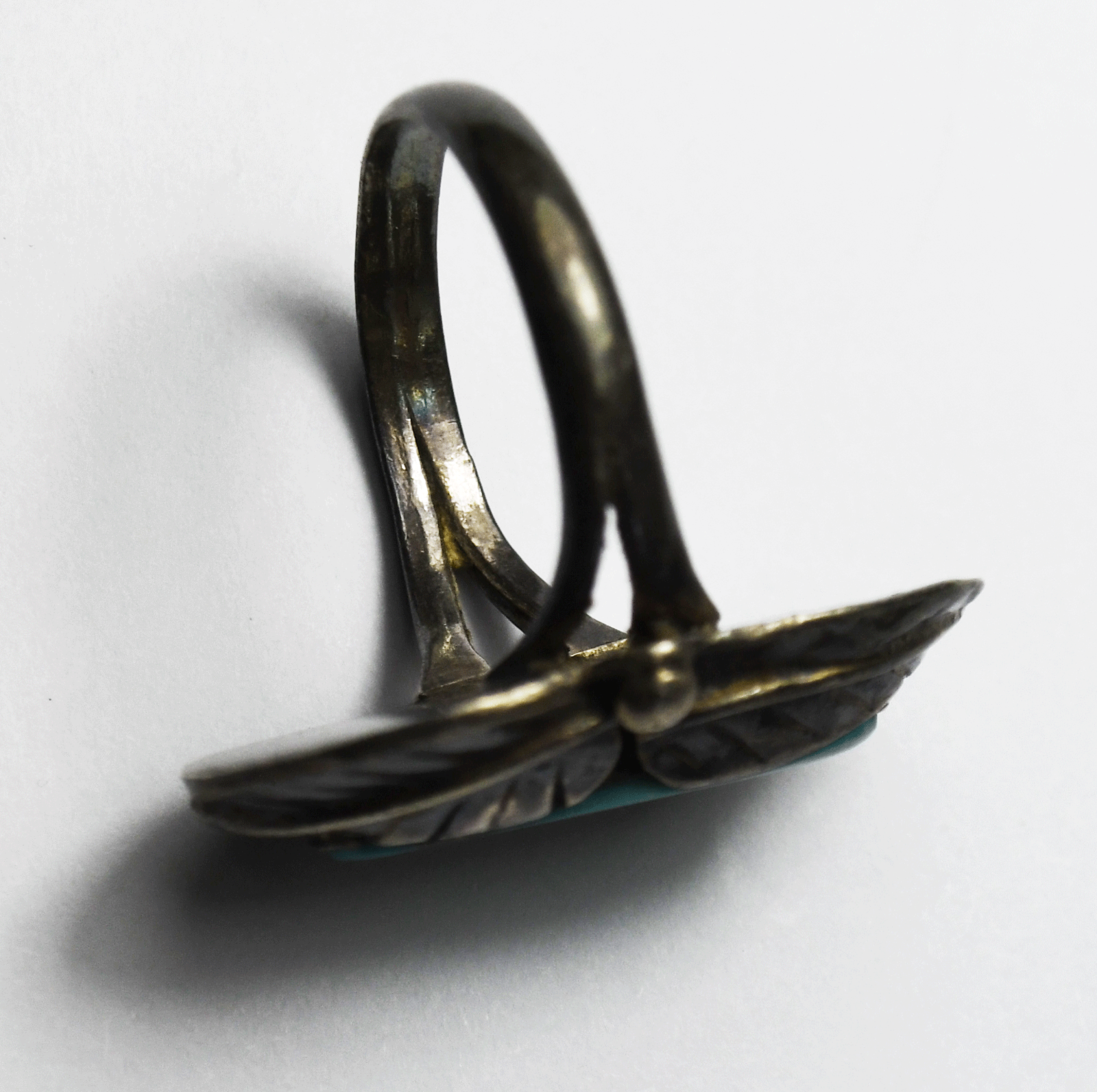 Antique Sterling Silver Turquoise Floral Leaf Ring 26mm Size 7-1/2