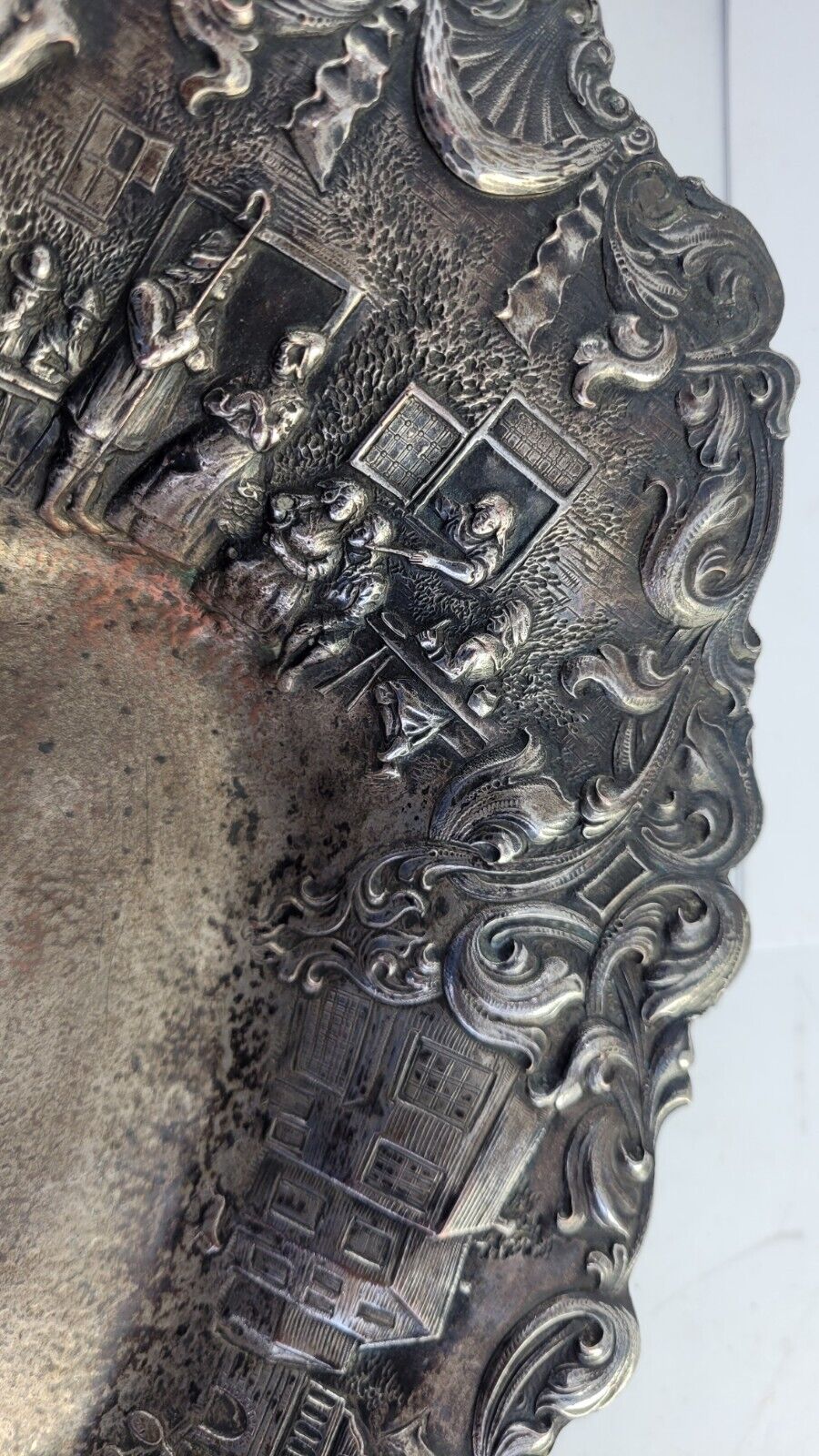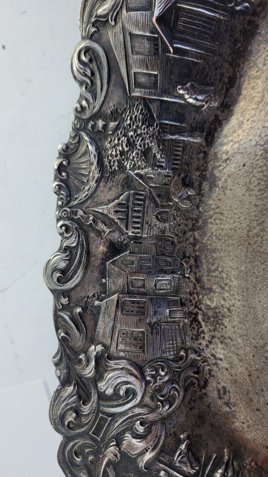 Barbour International Silver Co Quadruple Plate Dutch Scene Bread Tray 13.5"