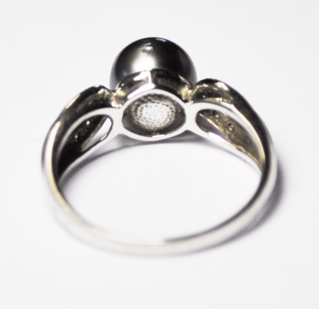 Beautiful 10k White Gold Tahitian Black Pearl & Diamond Rings 8.5mm Size 8