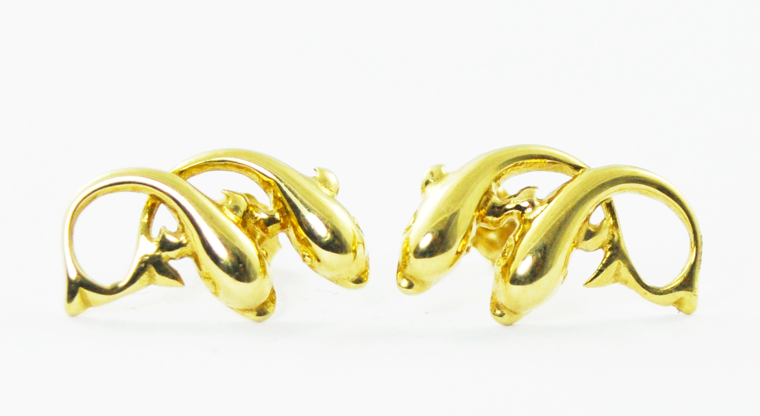 Beautiful 14k Yellow Gold Double Dolphin Pieced Stud Earrings 17mm