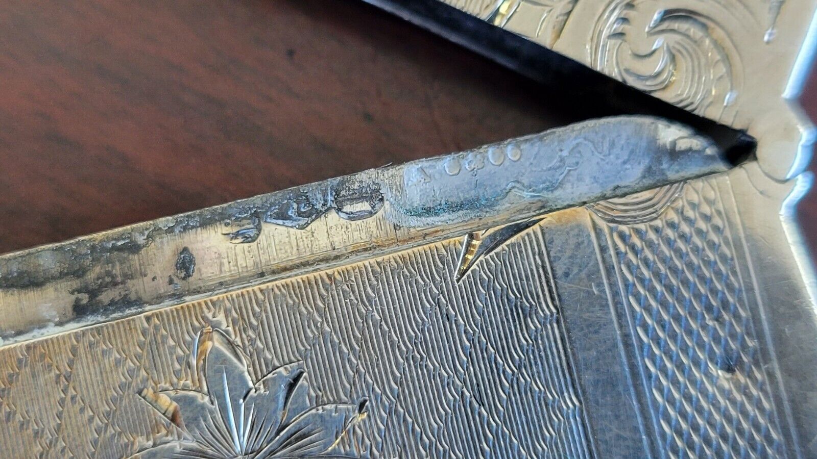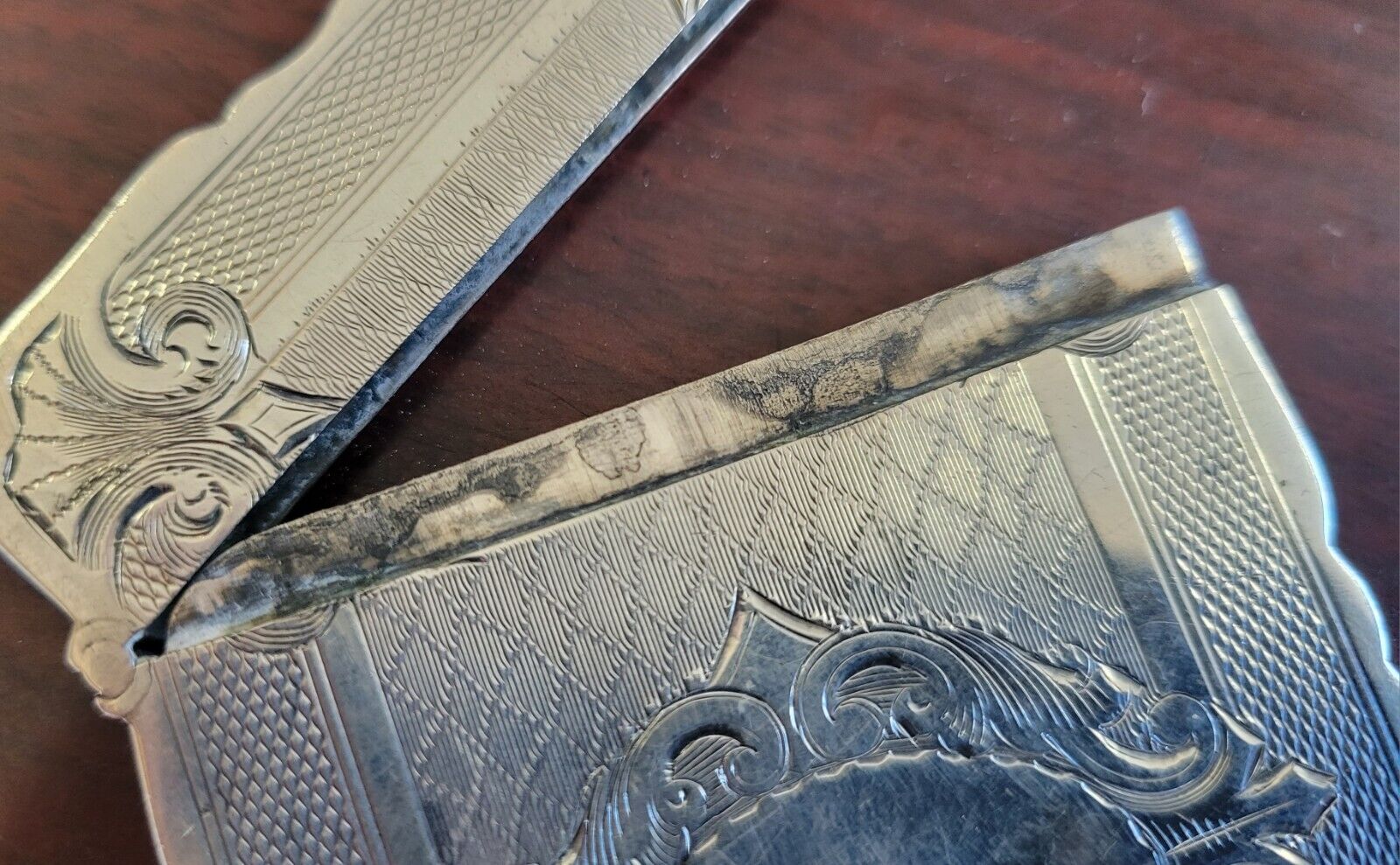 Deco Vintage. 900 Fine Silver Business Calling Card Holder Hinged Top 1.6oz