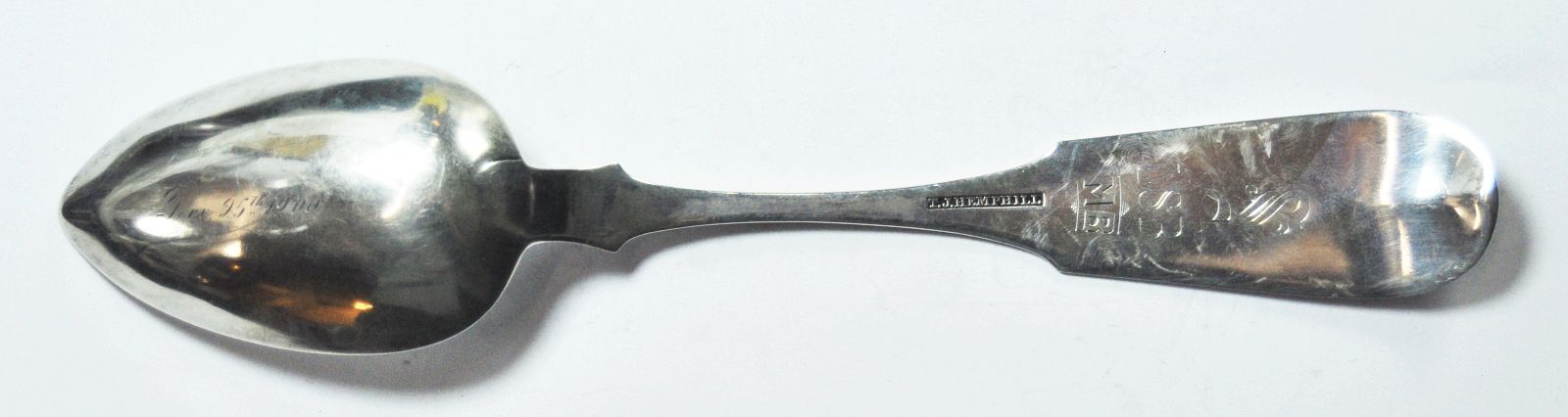 Early 1800's TJ Hemphill Coin Silver Serving Souvenir Spoon Webb MO 7 Initials